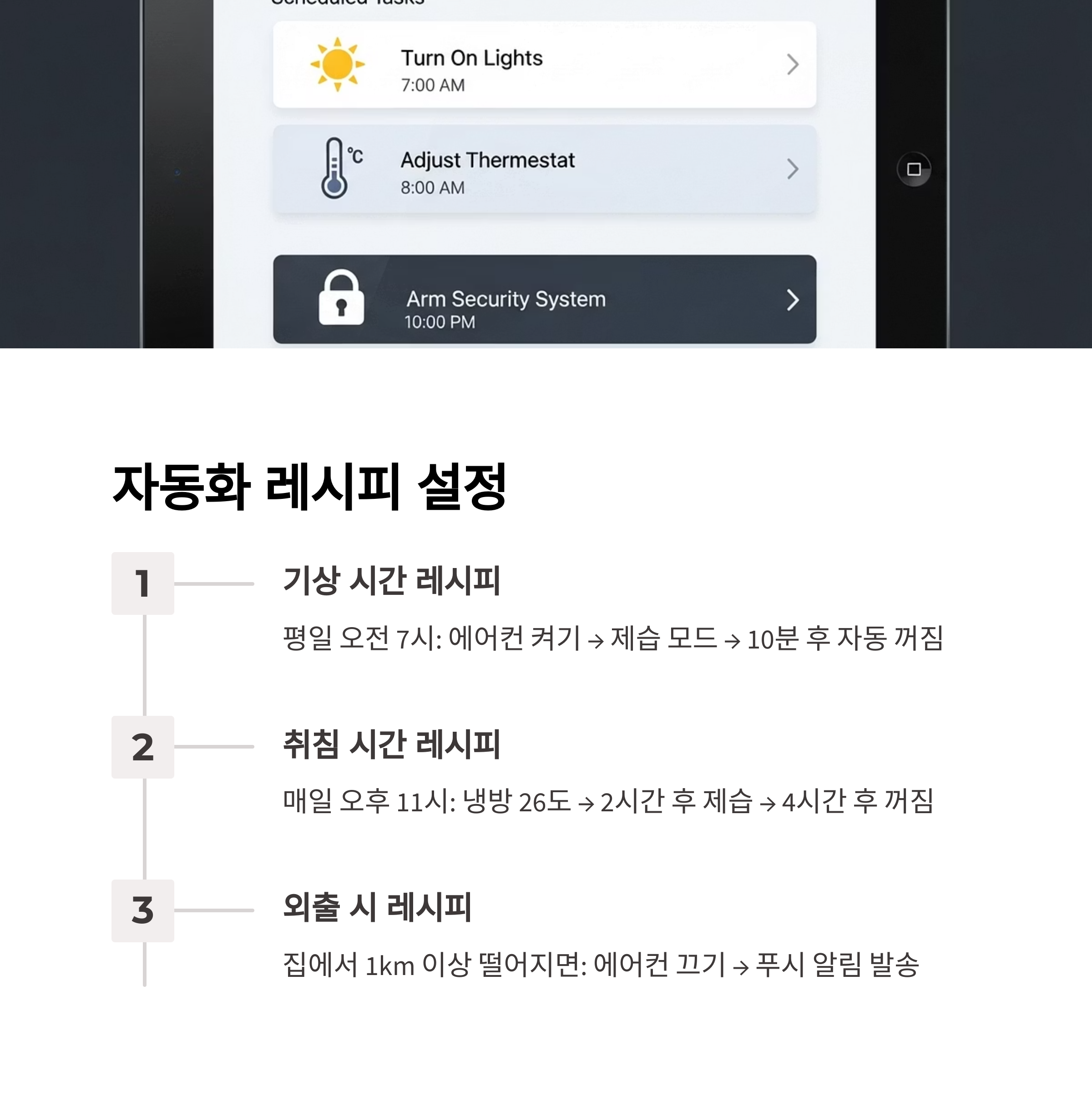 처음에는 설정이 복잡해 보일 수 있지만, 한 번 설정해두면 매우 편리하게 사용할 수 있습니다. 특히 여름철 외출 전 미리 집을 시원하게 만들거나, 취침 시간에 맞춰 자동으로 온도를 조절하는 기능은 실생활에서 큰 도움이 됩니다.
