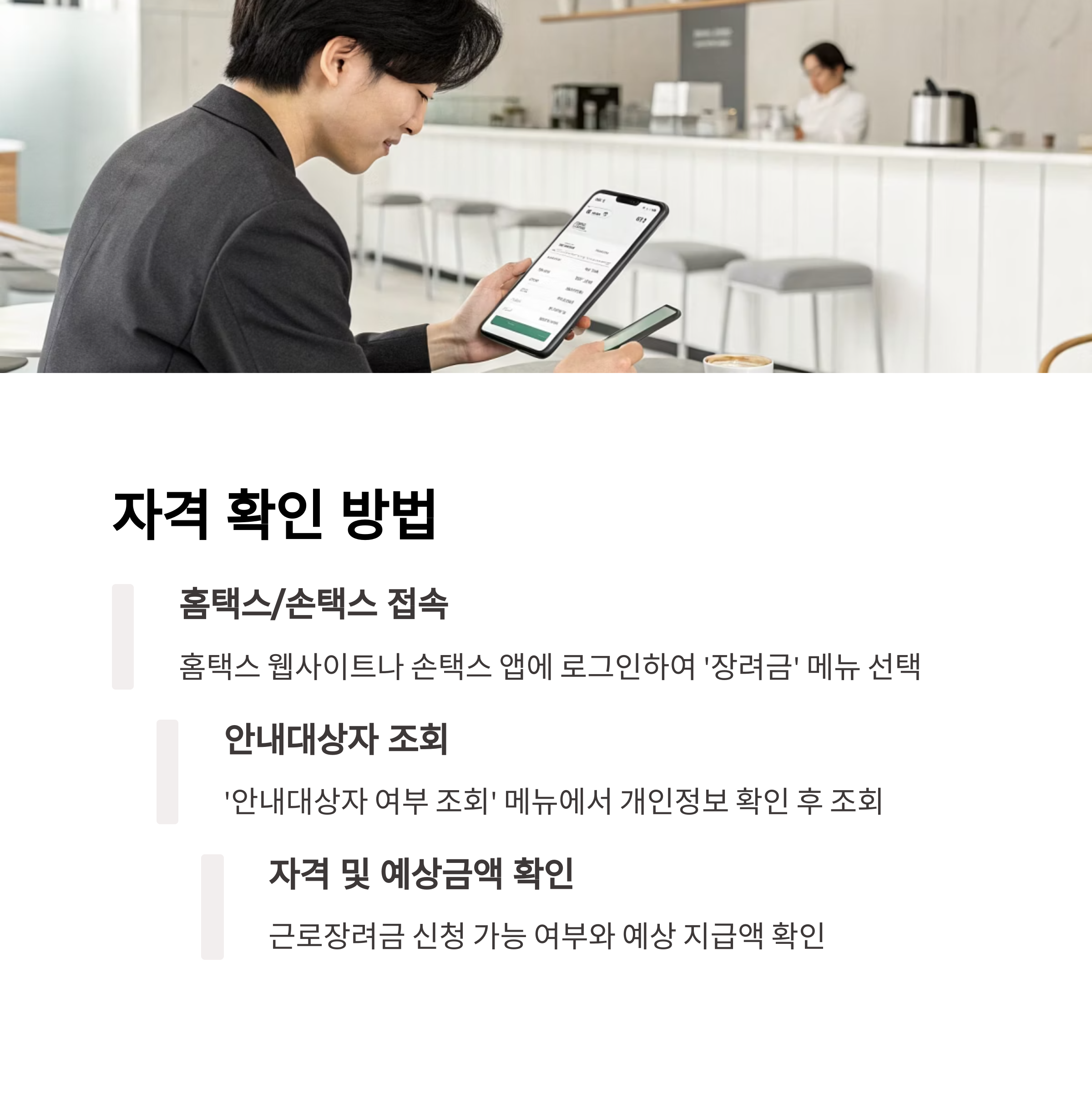 근로장려금을 신청하기 전에 내가 자격 요건을 충족하는지 미리 확인하는 것이 중요합니다. 여러 방법을 통해 쉽고 정확하게 자격을 확인할 수 있습니다.