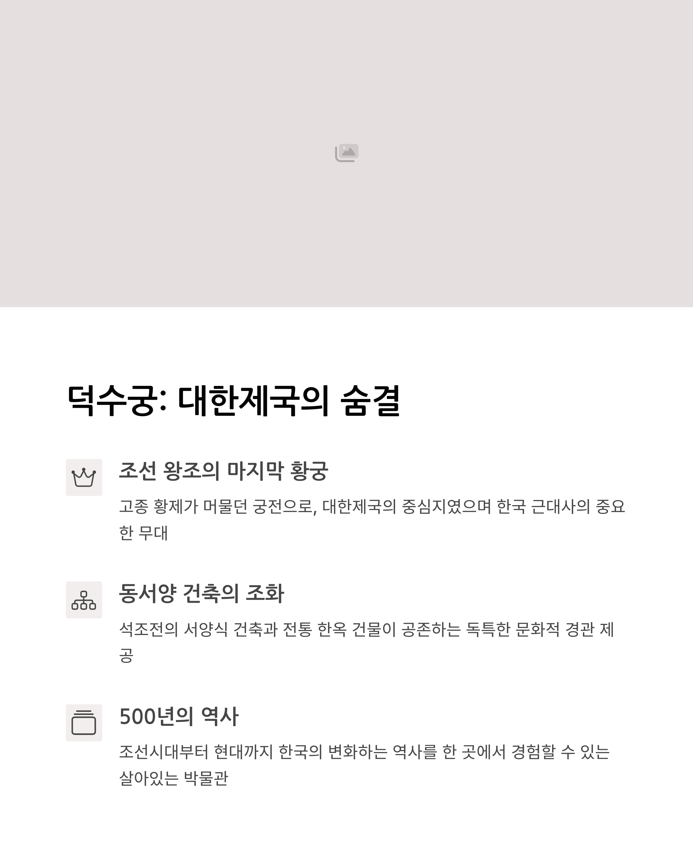 | 덕수궁 돌담길 | 고궁의 정취와 함께 걷는 서울 대표 산책 코스입니다. |