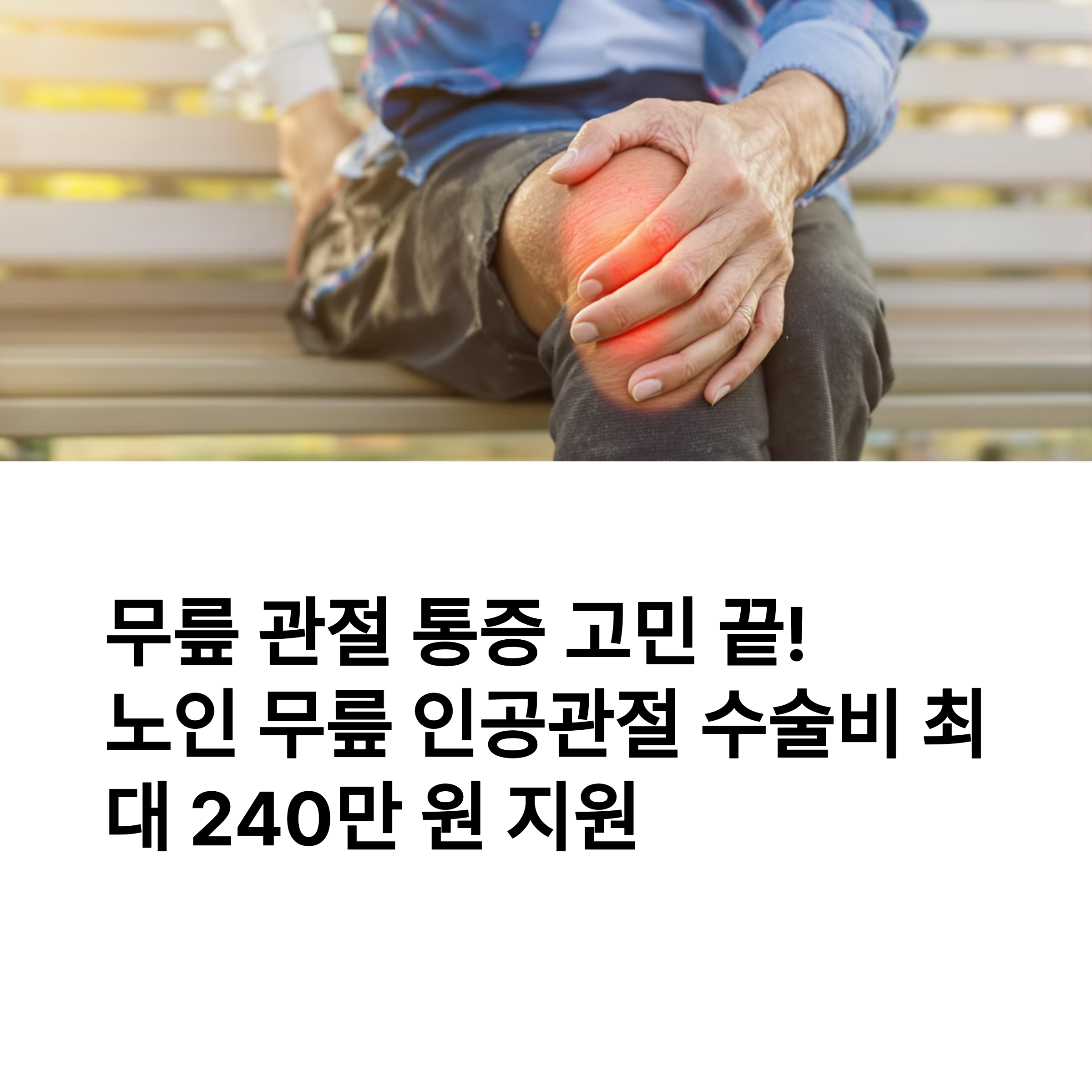 익산시: 저소득층 고령자의 경제적 부담 완화와 삶의 질 향상을 위해 무릎 인공관절 수술 지원 사업을 추진하고 있습니다. 지원 범위는 한쪽 무릎 기준 120만 원, 양쪽 240만 원까지입니다.