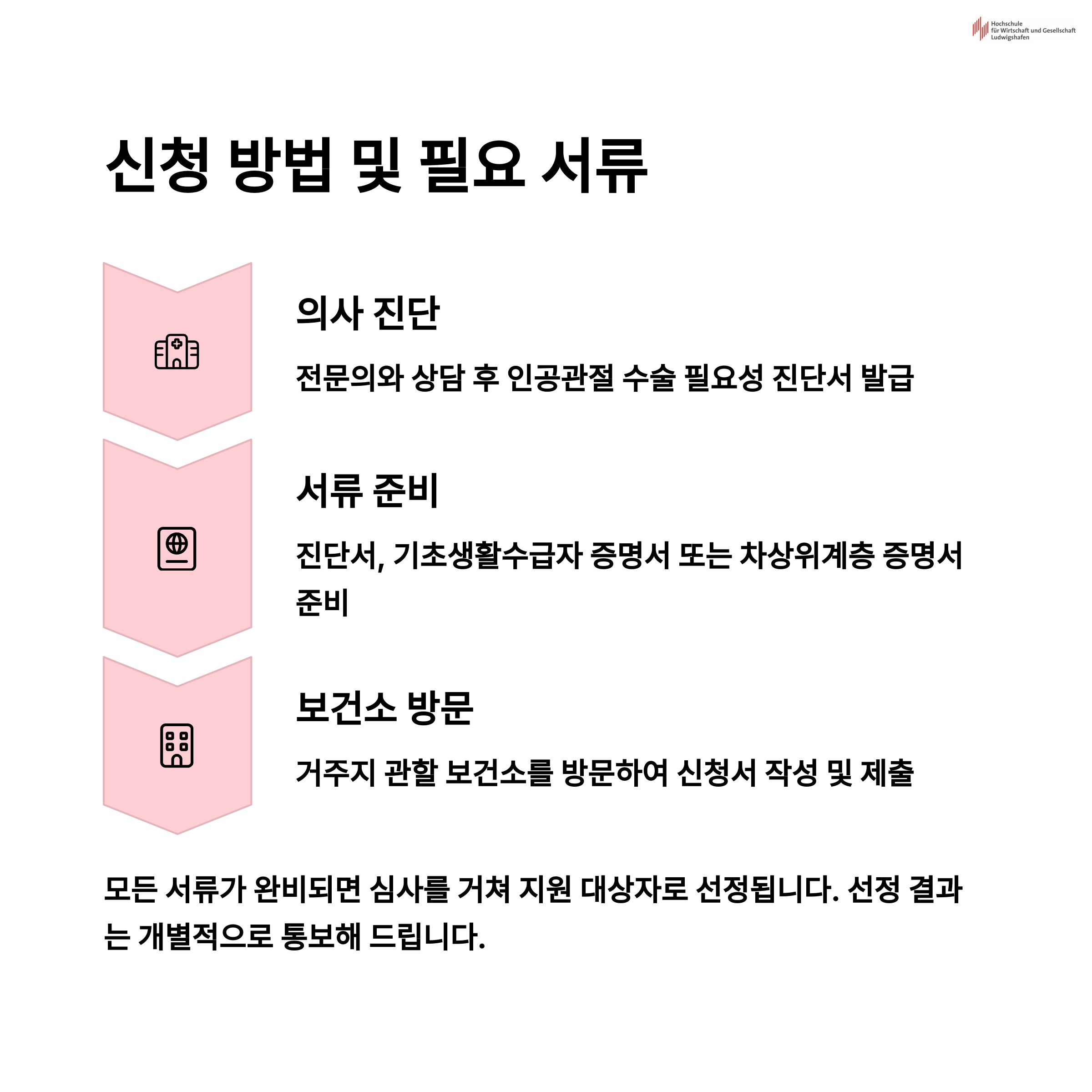 - 질환: 건강보험 급여 '인공관절치환술(슬관절)' 인정 기준에 준하는 질환자