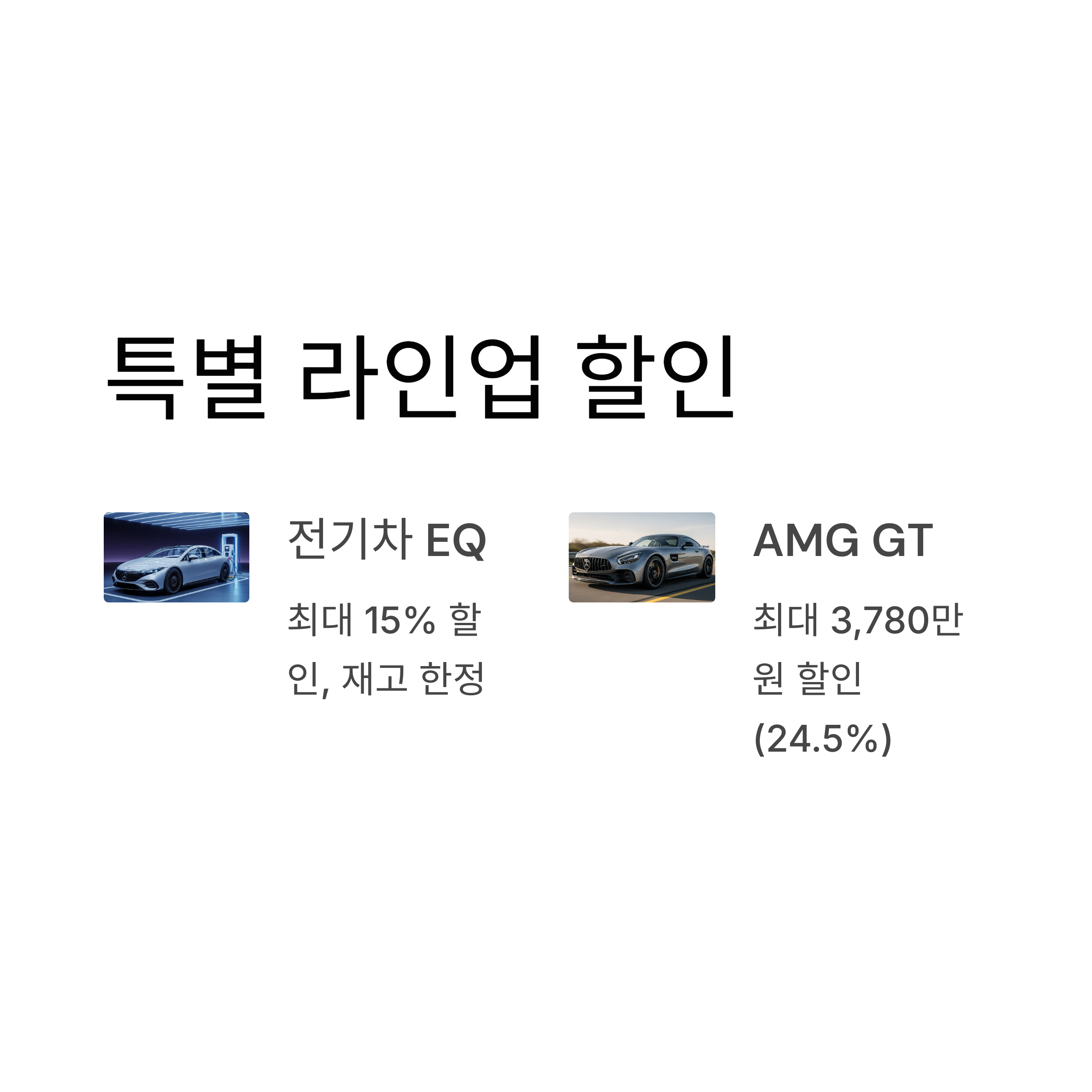 - 전기차 EQ 라인업: 재고 물량 기준 최대 15% 할인