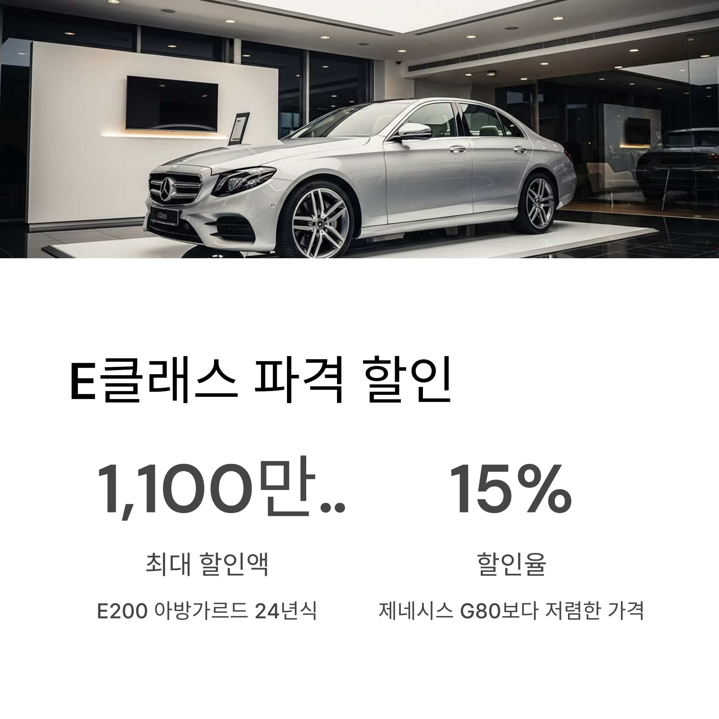 - E클래스: 평균 8~12% 할인, 최대 1,100만원