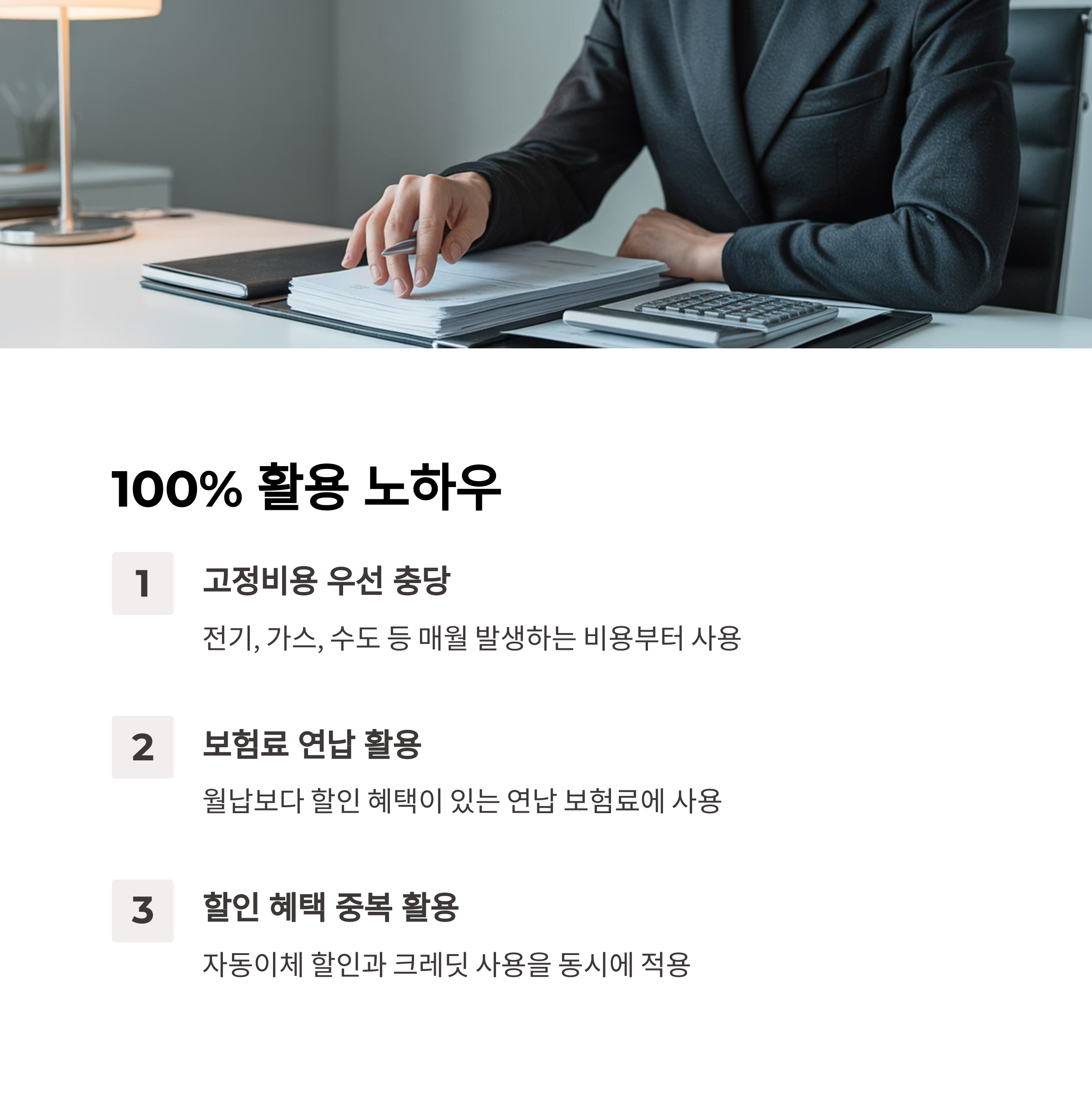 - 계획적 사용: 월별 고정비용 계산 후 체계적 활용