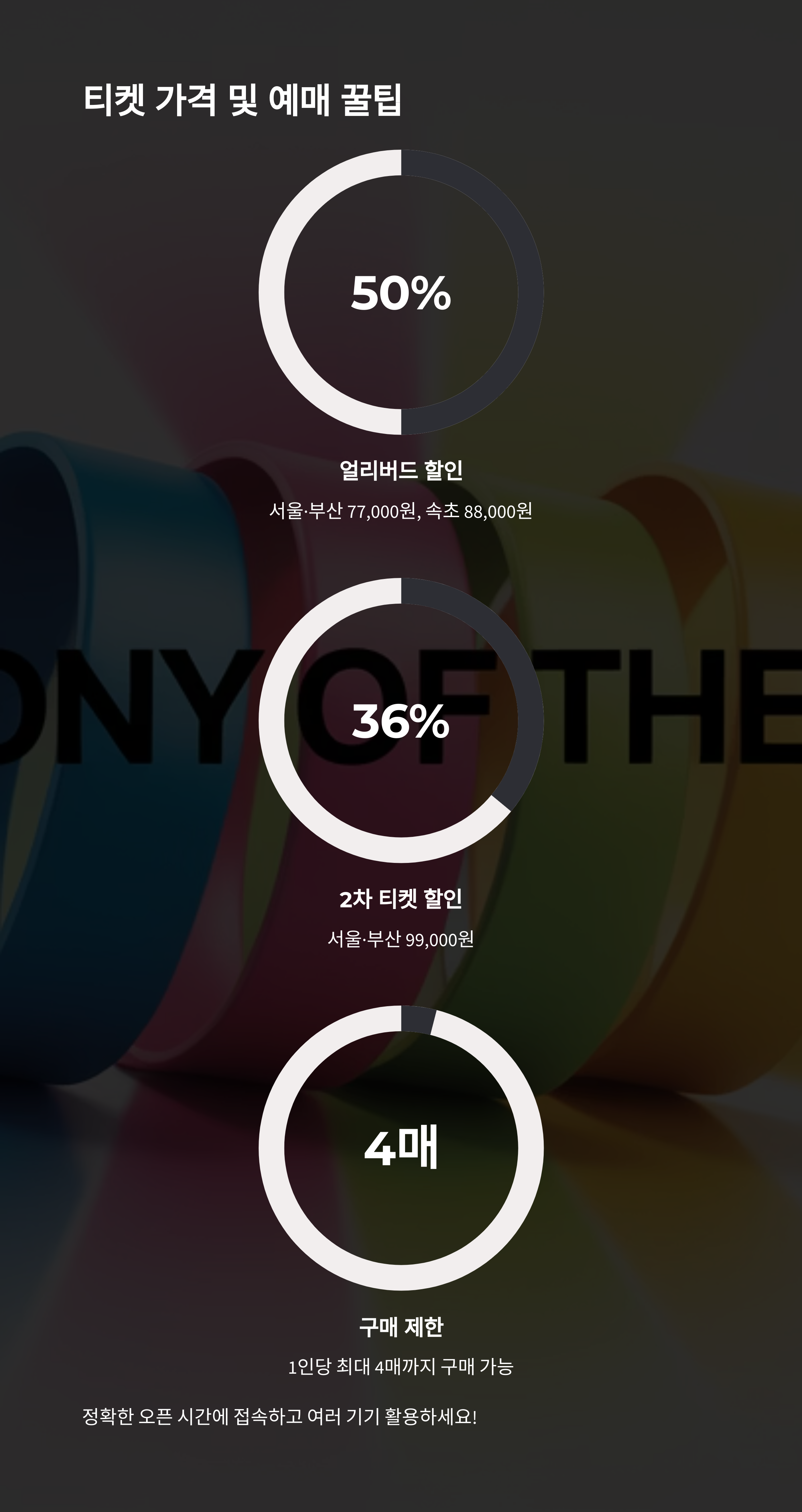 - 🎫 조기 예매 혜택: 얼리버드부터 최대 42% 할인 혜택
