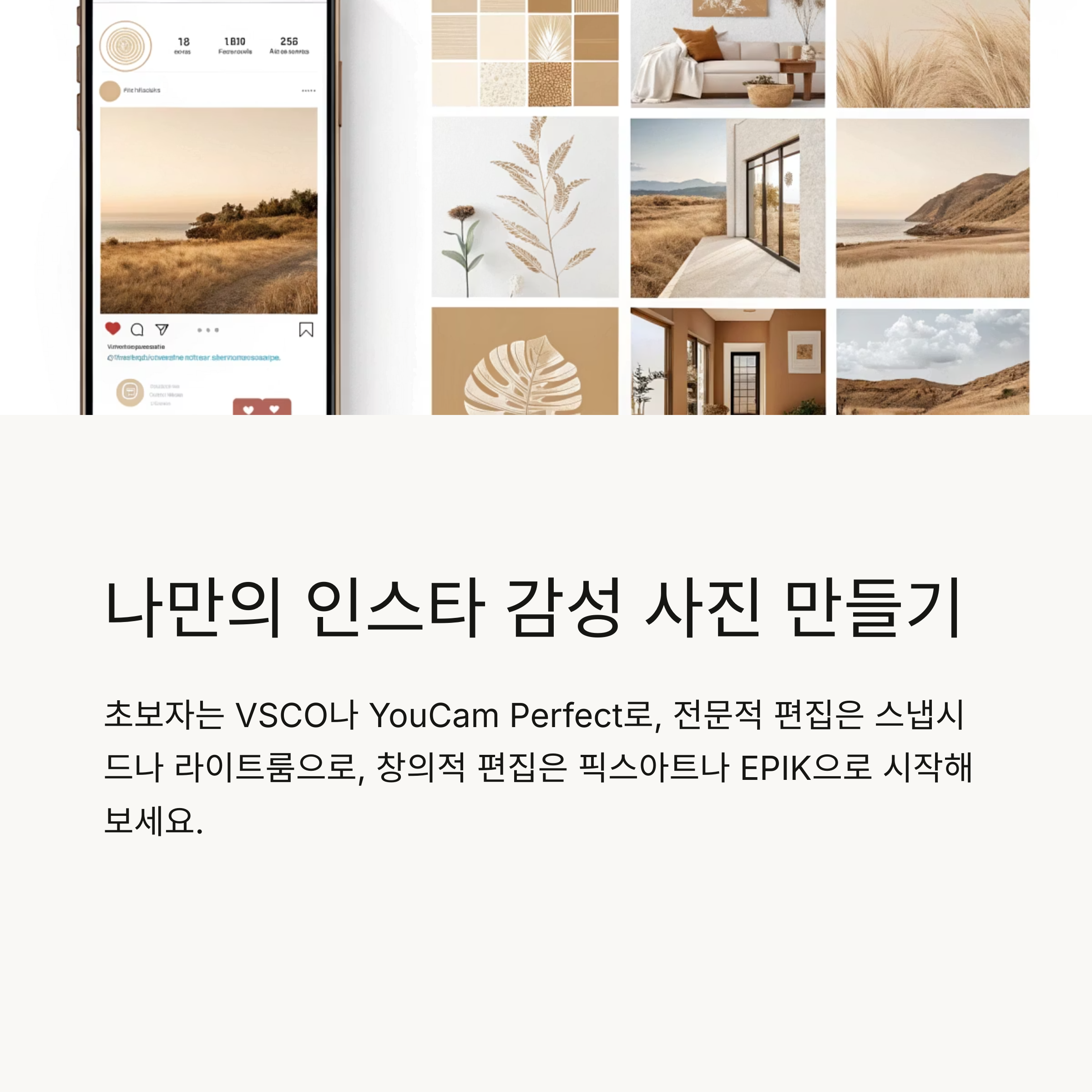 인스타그램에서 눈길을 끄는 감성적인 사진들을 보면서 '나도 이런 사진을 찍고 싶다'는 생각을 해본 적이 있으신가요? 사실 멋진 인스타 감성 사진의 비밀은 촬영 실력보다는 적절한 사진 편집에 있습니다.
