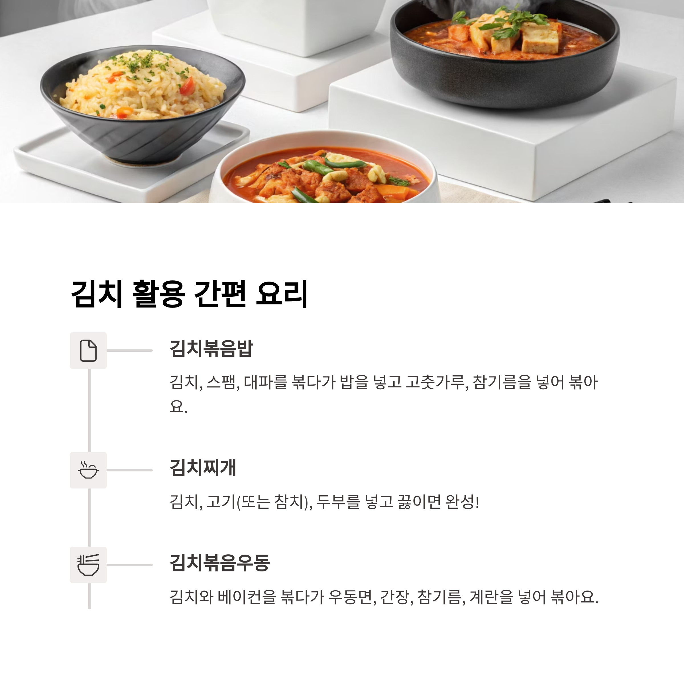 김치는 한국인의 식탁에서 빠질 수 없는 음식이자 다양한 요리에 활용할 수 있는 만능 식재료입니다. 김치만 있으면 간편하게 한 그릇 요리를 완성할 수 있어 자취생들에게 필수적인 식재료입니다. 김치를 활용한 간단한 한 그릇 요리 레시피를 소개합니다.