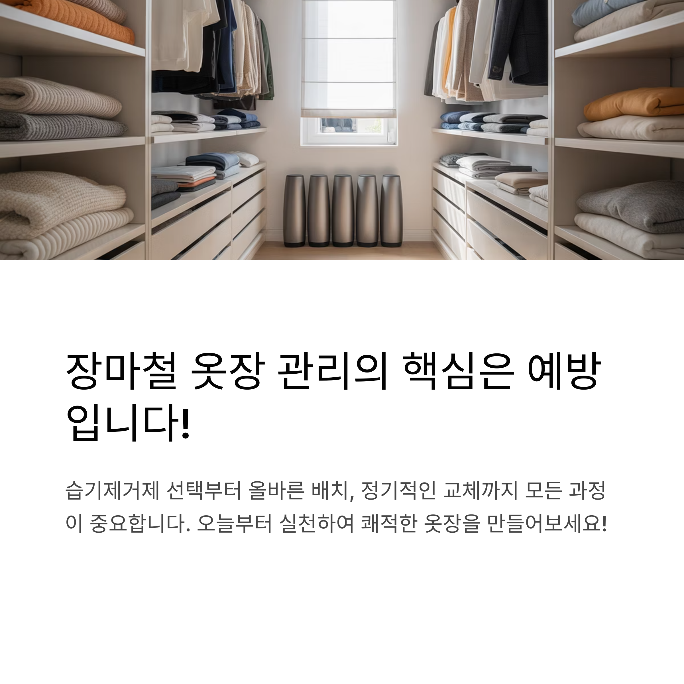 올바른 사용법과 안전수칙을 준수하면서 꾸준히 관리한다면, 장마철에도 깔끔하고 쾌적한 옷장을 유지할 수 있습니다. 건강한 생활환경을 위해 오늘부터 실천해보시기 바랍니다.