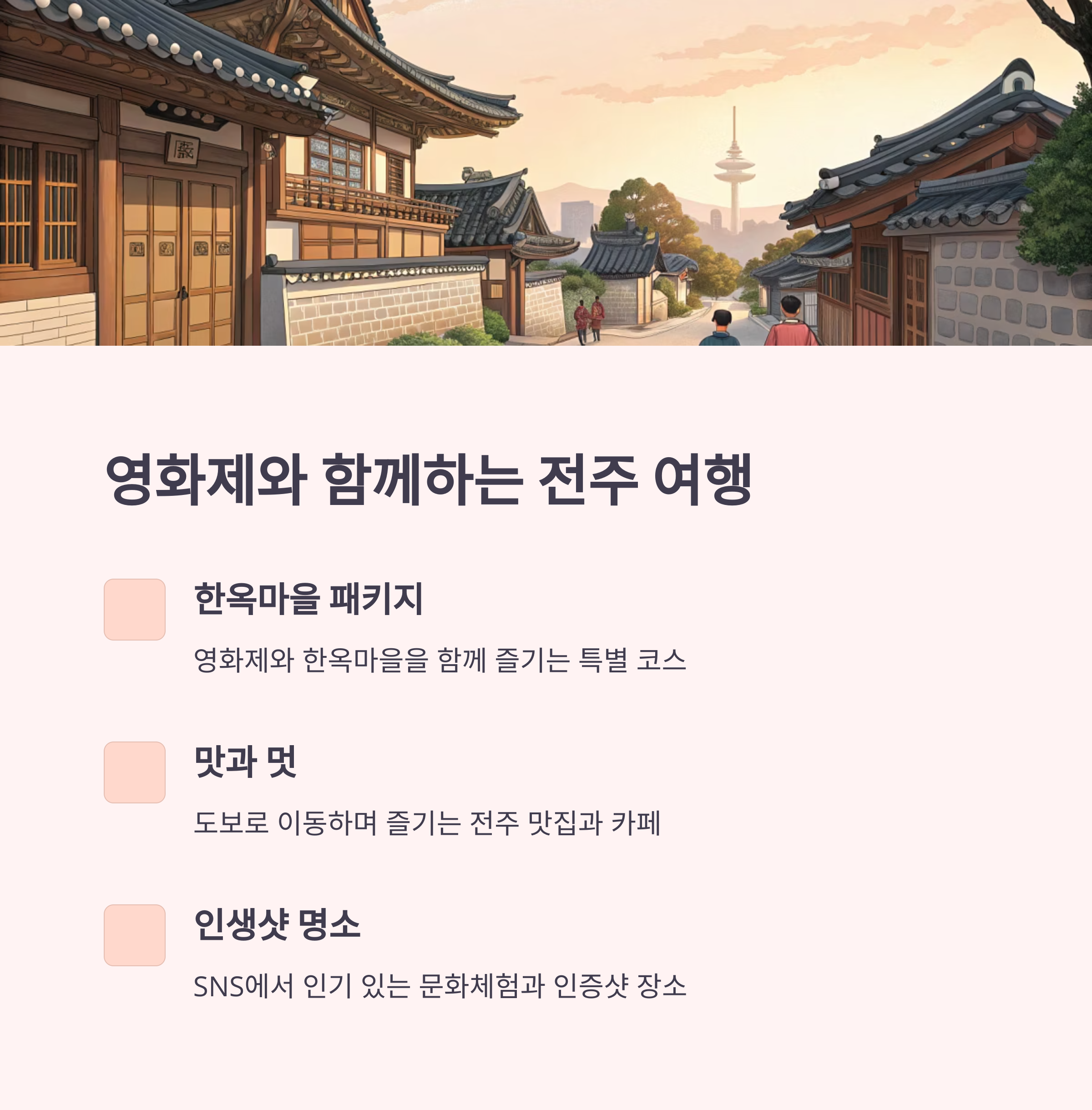 - 한옥마을 방문과 영화 관람을 연계한 코스 추천