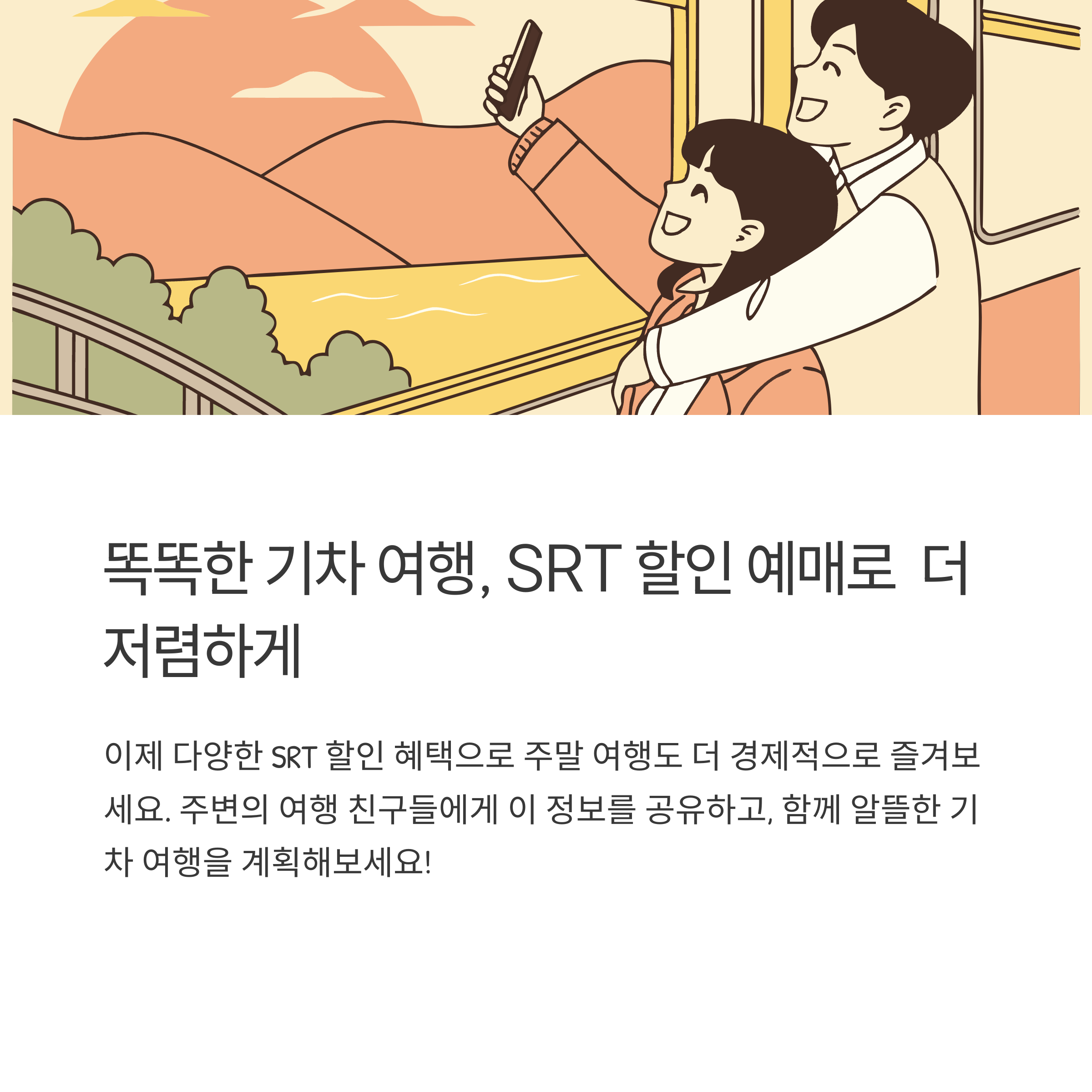 - 주말부부/장거리 통학생: SRT 정기권 (최대 60% 할인)