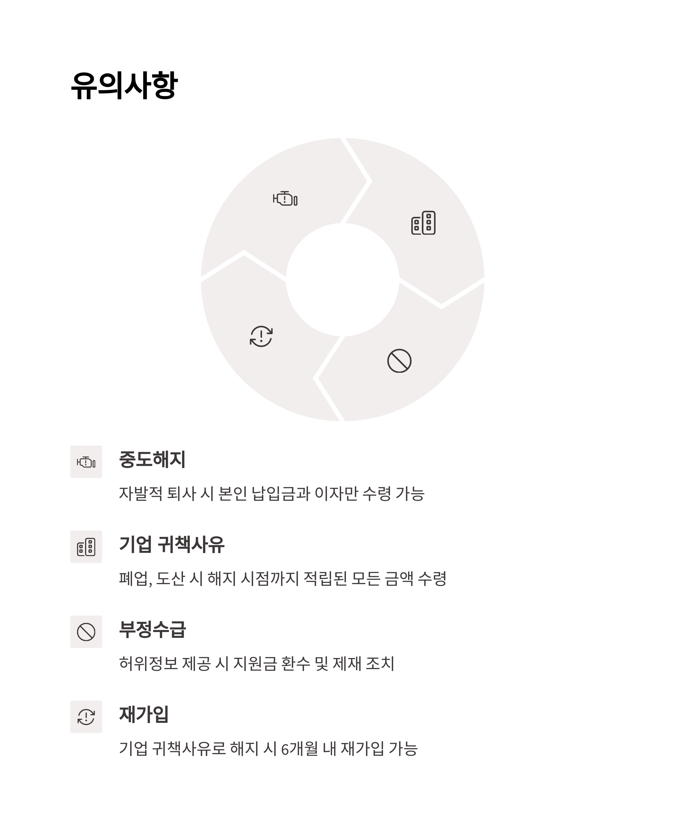 • 단, 타 중소기업에 재취업하여 공제 가입 시 기존 납입금 통산 가능