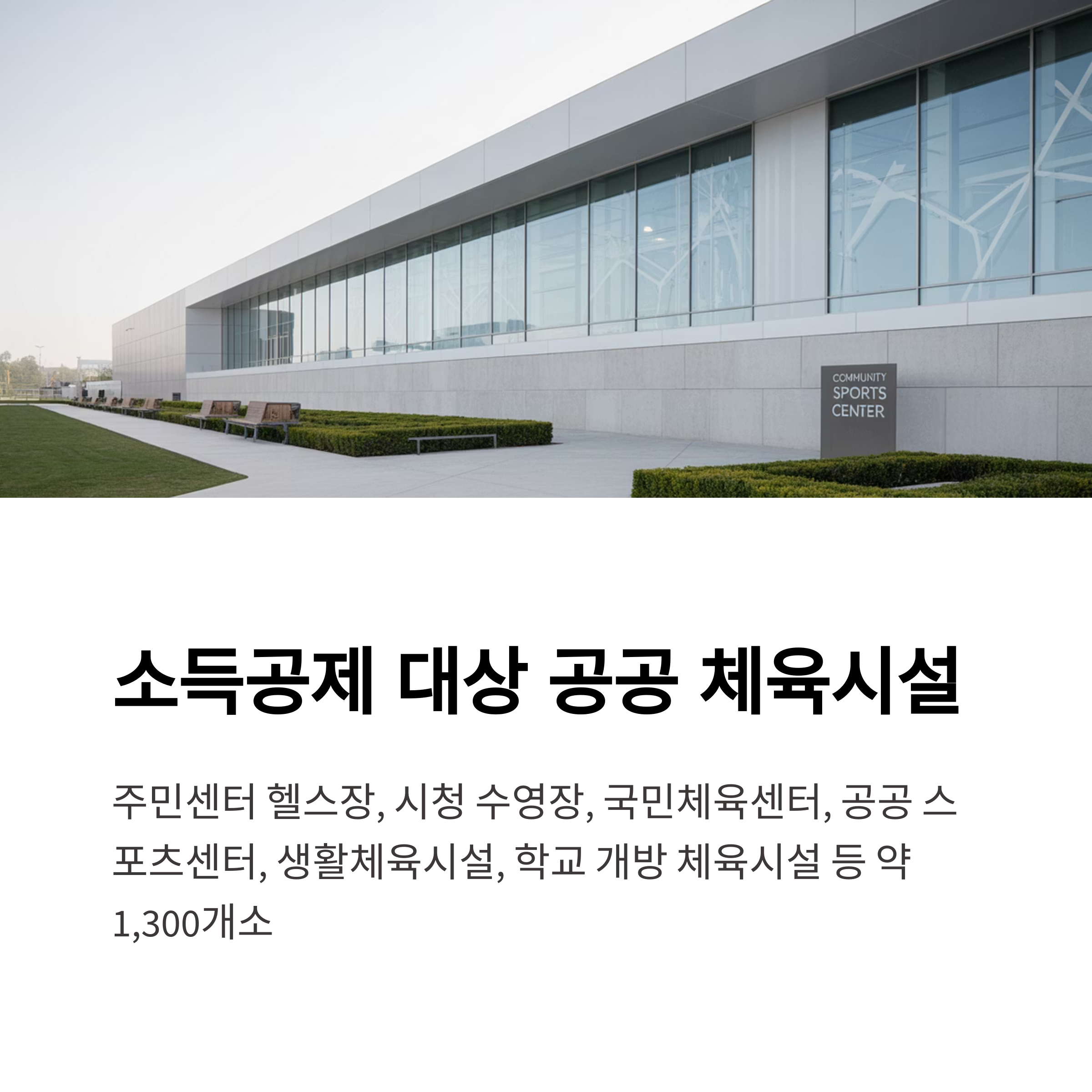 2025년 7월부터 소득공제 대상이 되는 체육시설은 크게 민간체육시설과 공공체육시설로 구분됩니다. 총 17,300여 개의 시설에서 소득공제 혜택을 받을 수 있게 되었습니다.