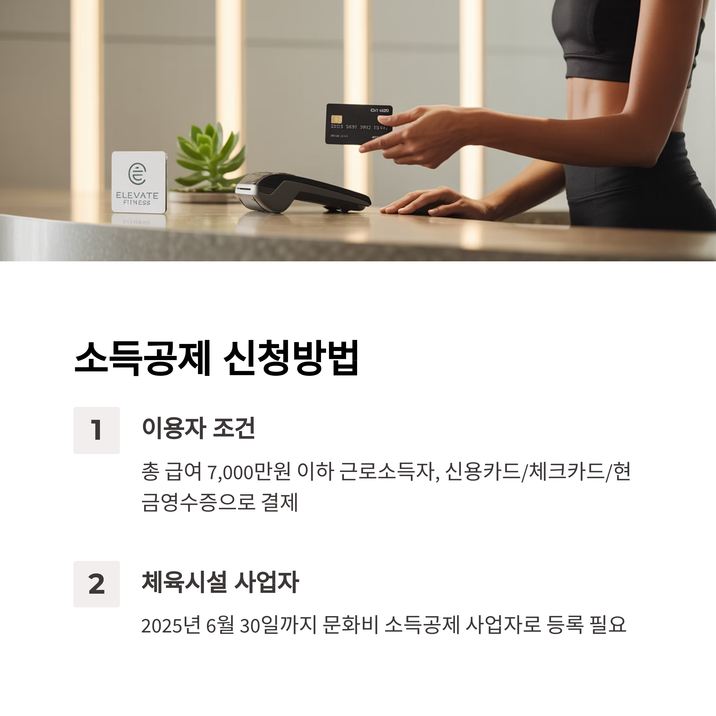 체육시설 운영자는 이용자들이 소득공제 혜택을 받을 수 있도록 문화비 소득공제 사업자로 사전 등록해야 합니다.
