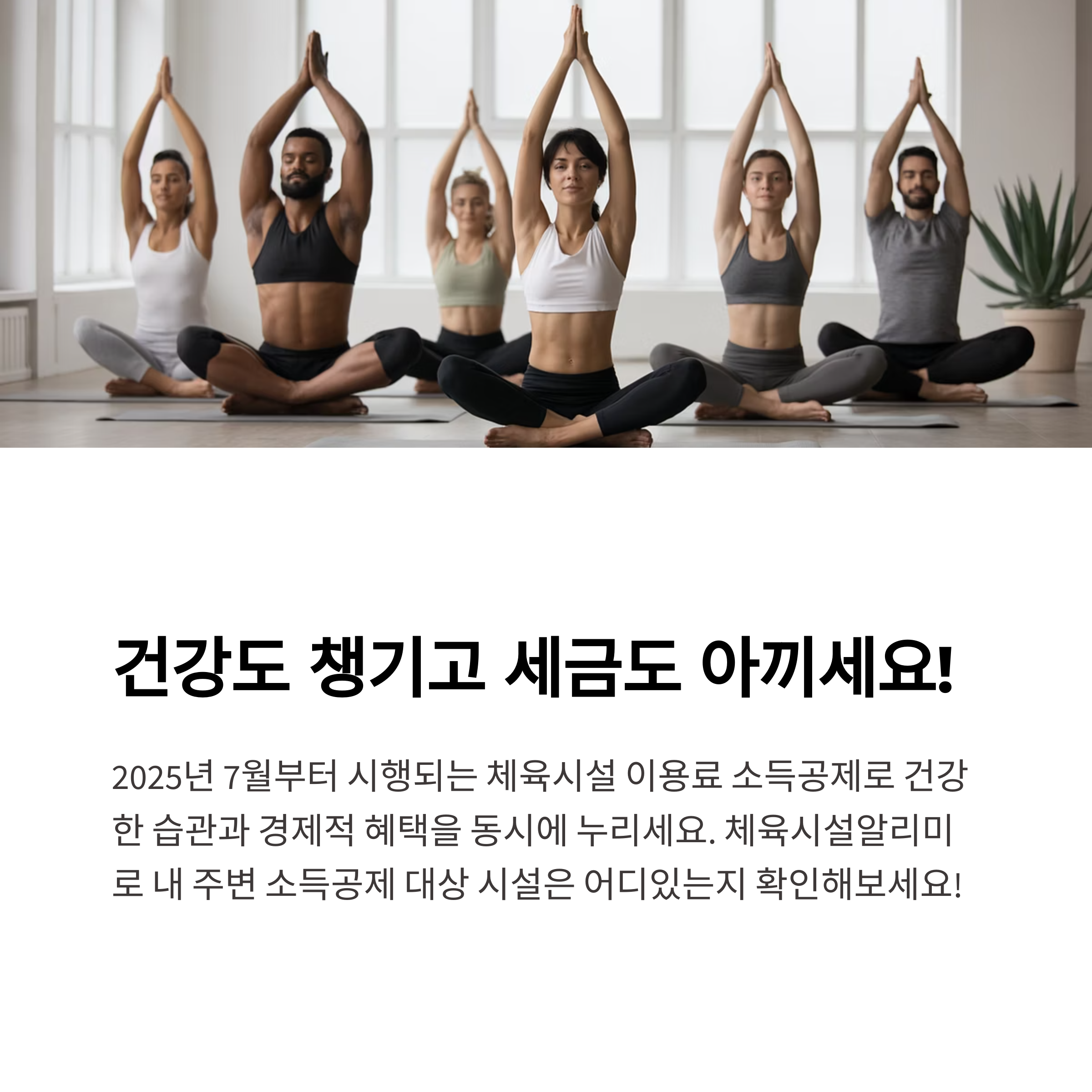 특히 공공체육시설까지 확대된 이번 제도로 인해 더 많은 국민들이 저렴한 비용으로 운동하면서 동시에 세금 혜택까지 받을 수 있게 되었습니다. 건강도 챙기고 절세도 하는 스마트한 2025년을 준비해보세요.