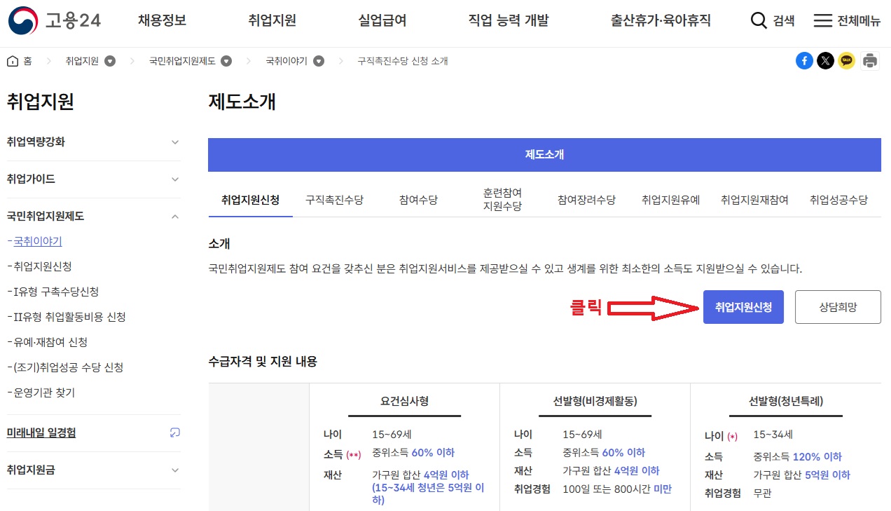 - 고용24 홈페이지(https://www.work.go.kr)에서 구직 등록
