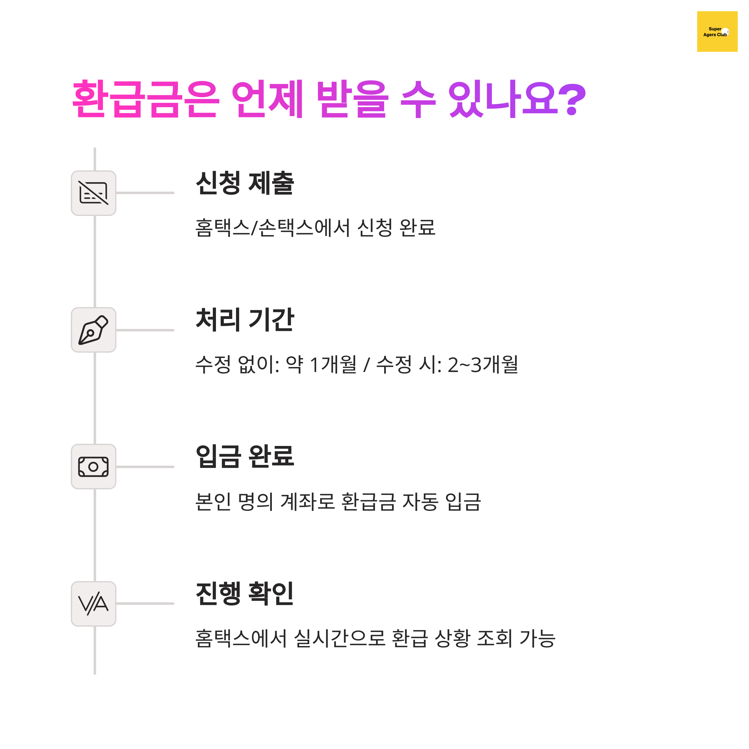 - 계좌 확인: 신청 시 입력한 환급계좌의 입금 내역을 확인합니다.