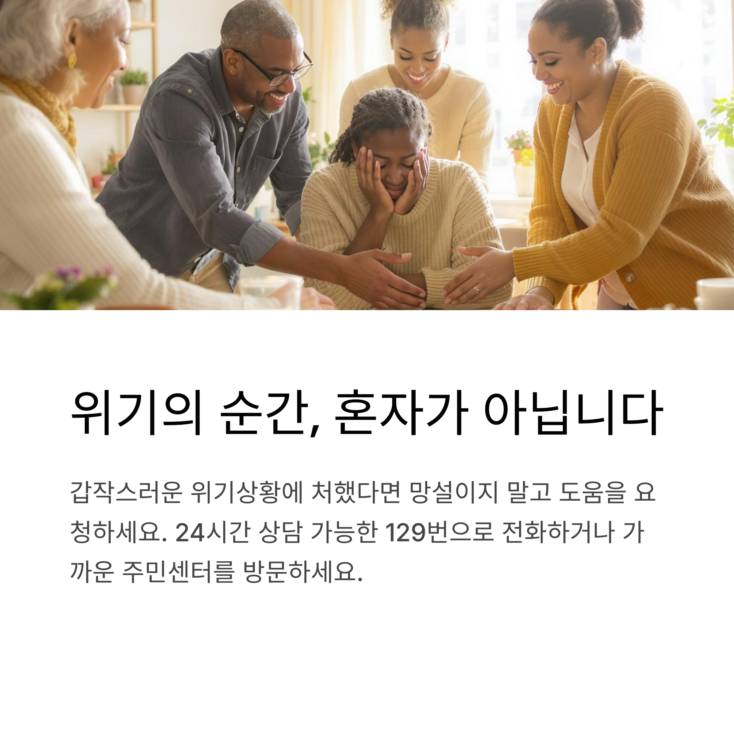 위기의 순간, 혼자 견디지 마시고 반드시 도움을 요청하세요.