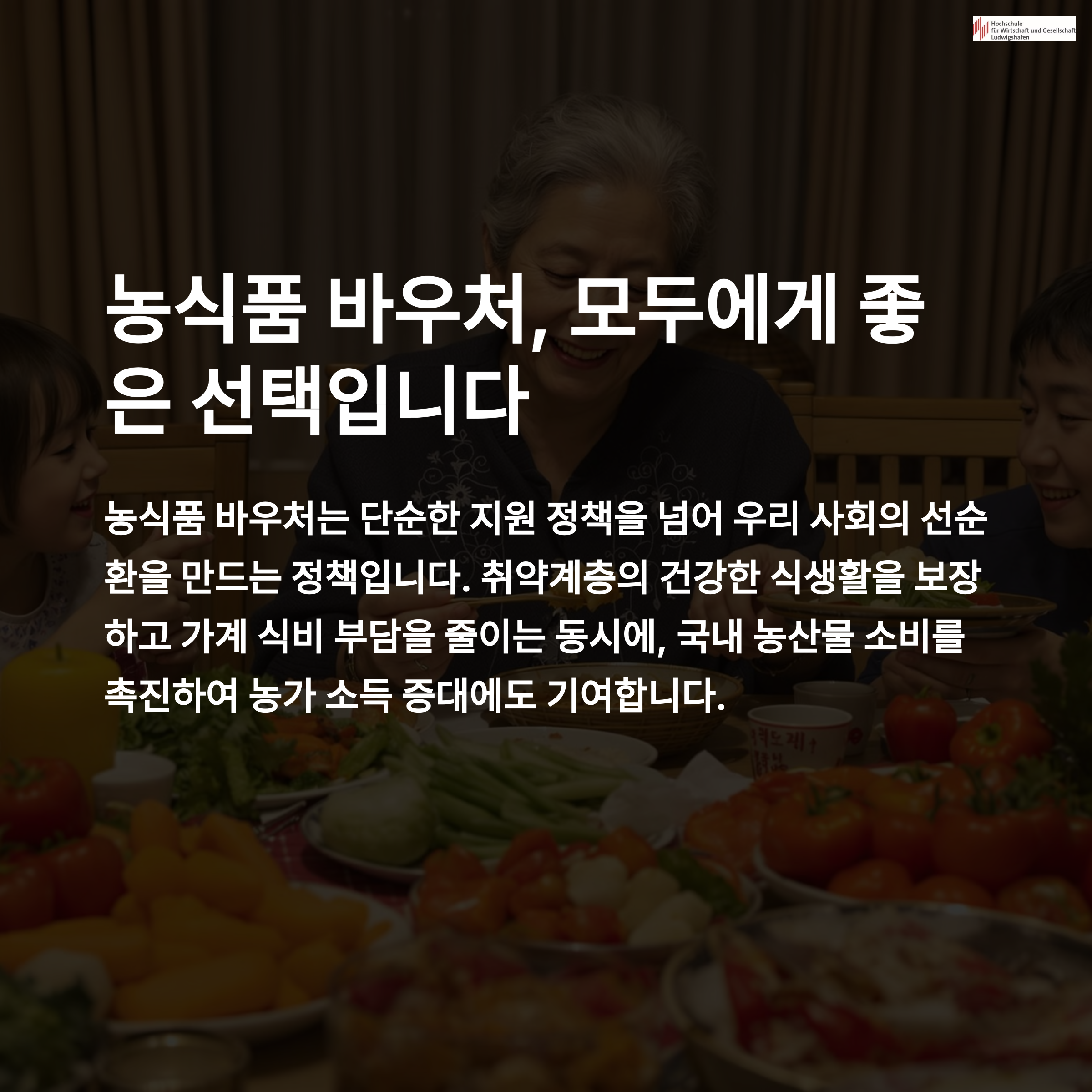 - 경제적 부담 완화: 저소득층 가구의 식료품 구매 비용 절감