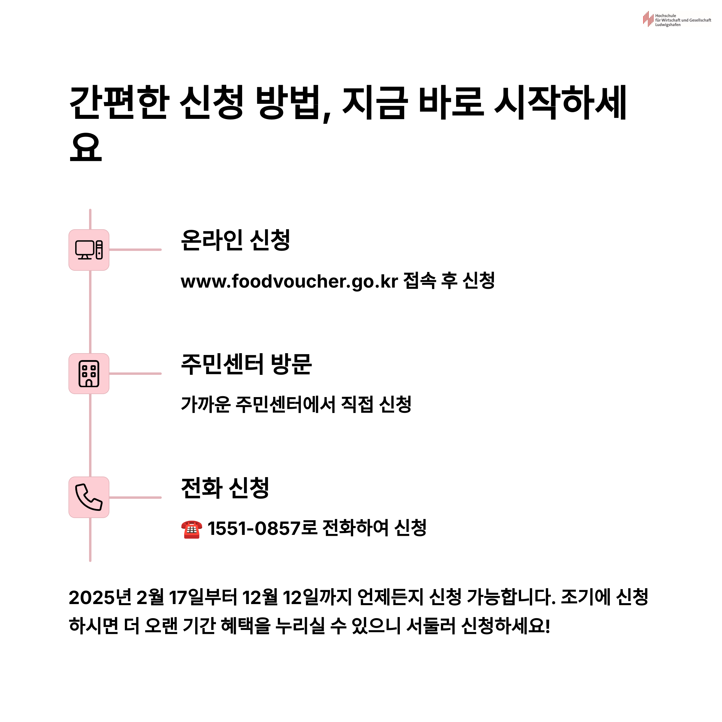 • 신청 기간: 2025년 2월 17일부터 12월 12일까지 수시 신청 가능