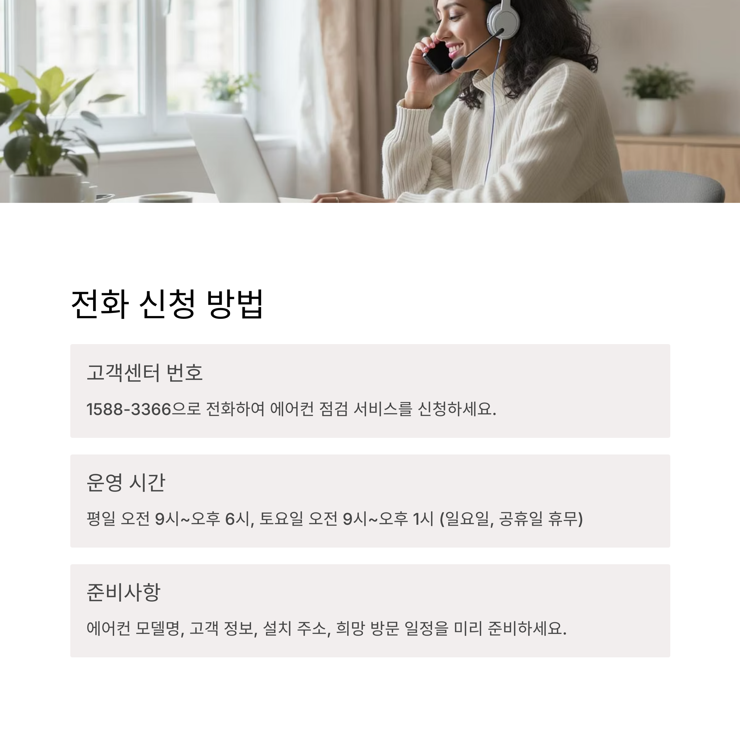• 빠른 상담을 위한 준비물: 모델명, 구매일, 증상 메모