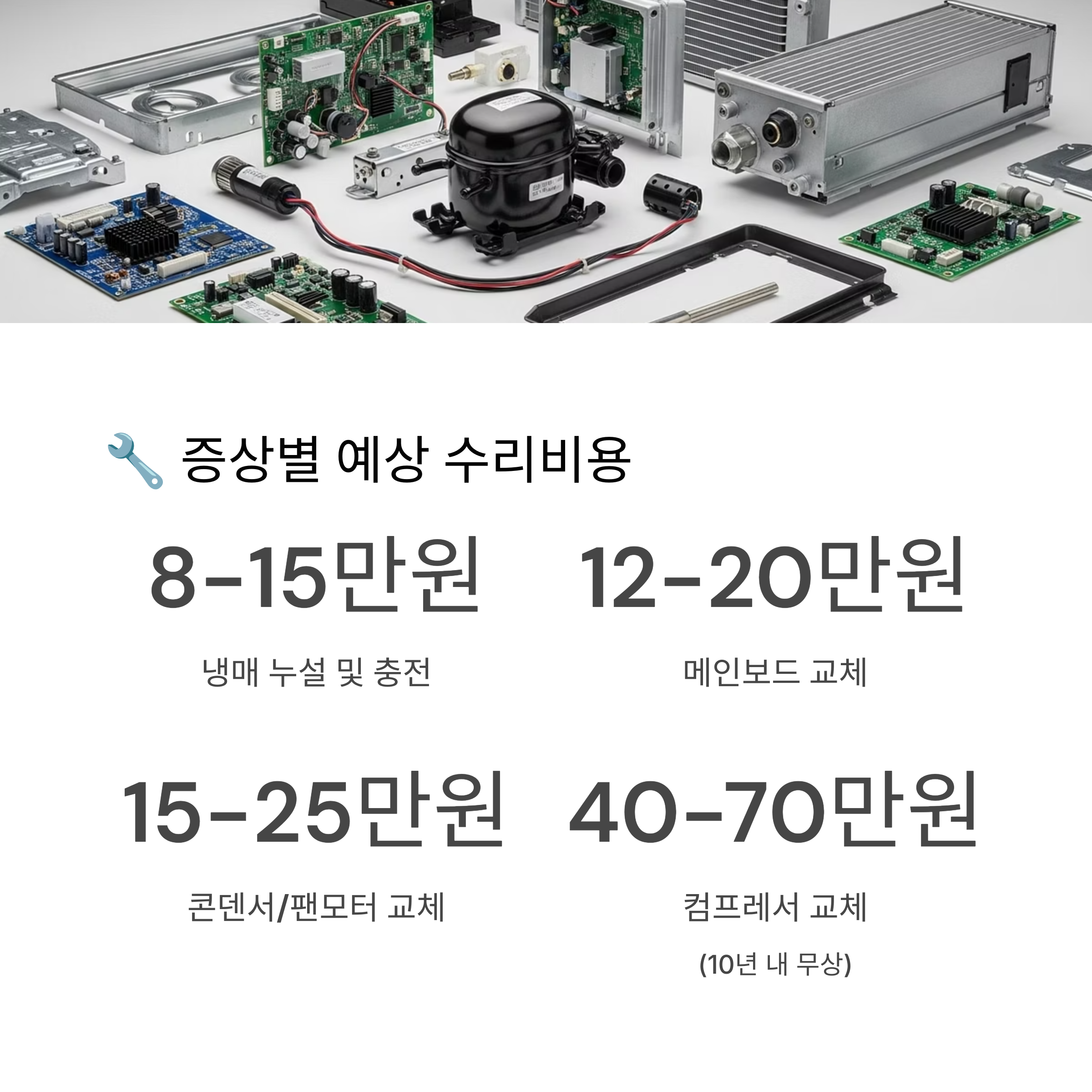 🔧 증상별 예상 수리비용은? (가스 충전, 메인보드 등)