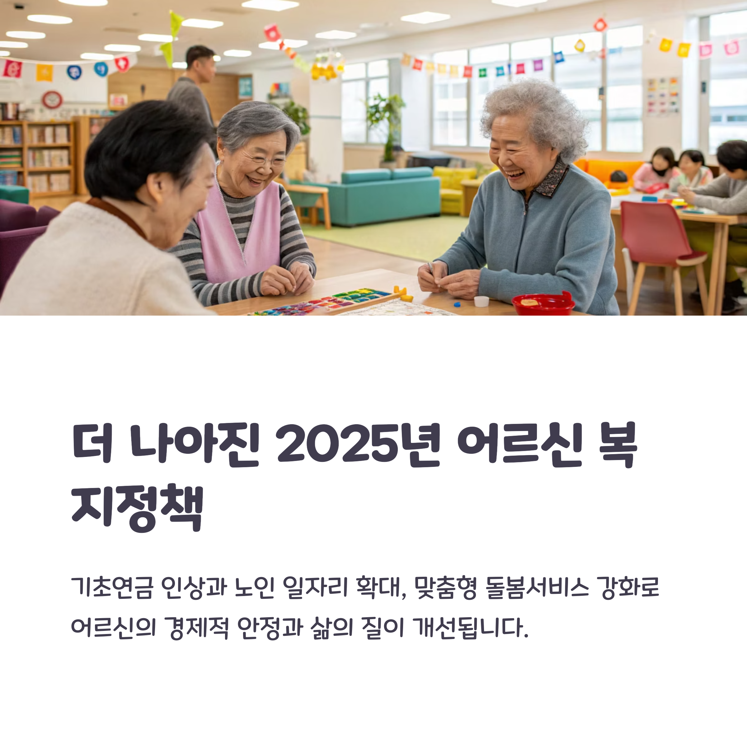 2025년에는 노인복지 정책이 전반적으로 확대되고 개선되었습니다. 주요 변경사항을 확인하시고, 새롭게 시행되는 혜택을 놓치지 마세요.