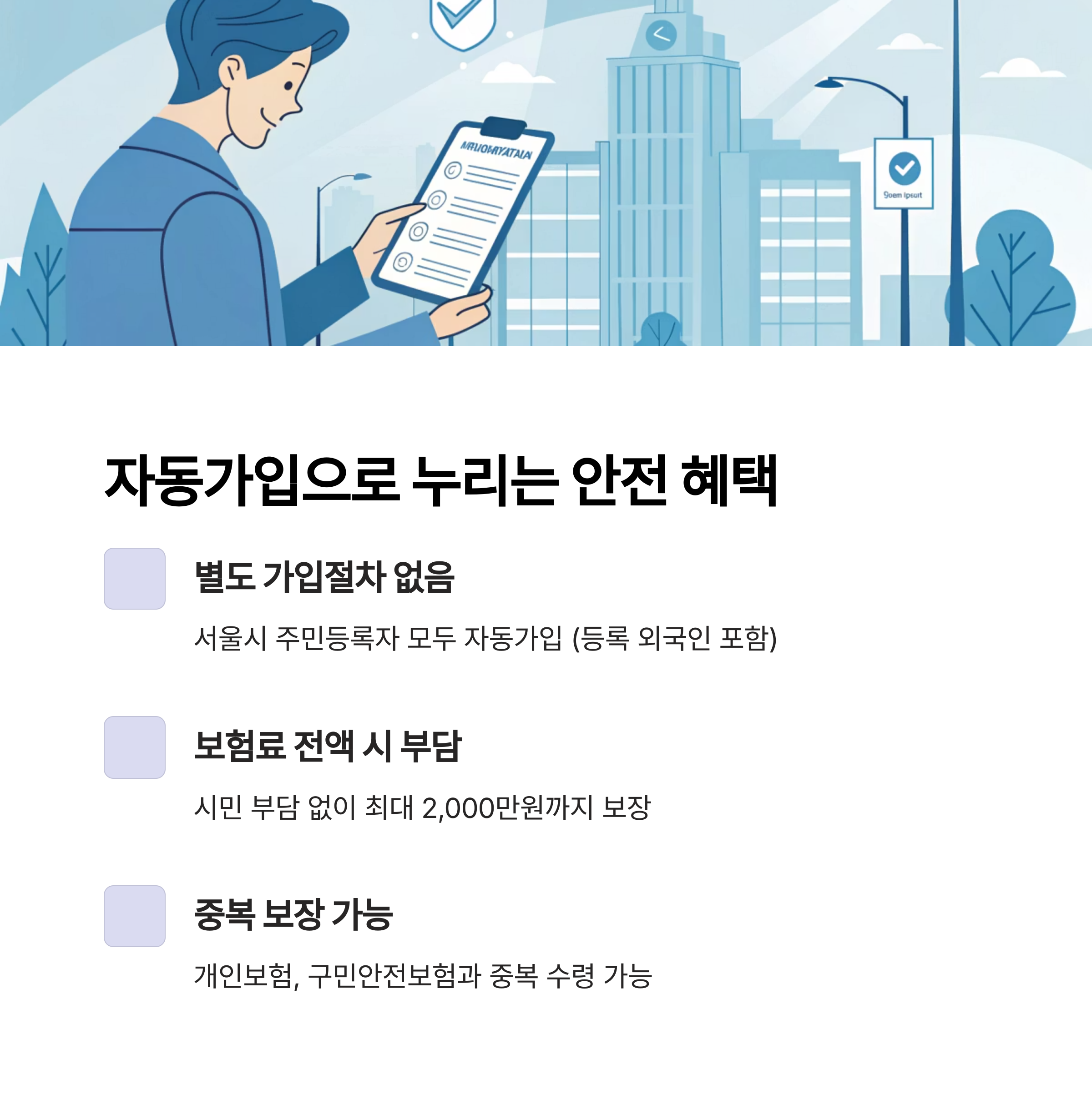 서울시민 안전보험과 함께 더 안전하고 든든한 서울 생활이 되시길 바랍니다!