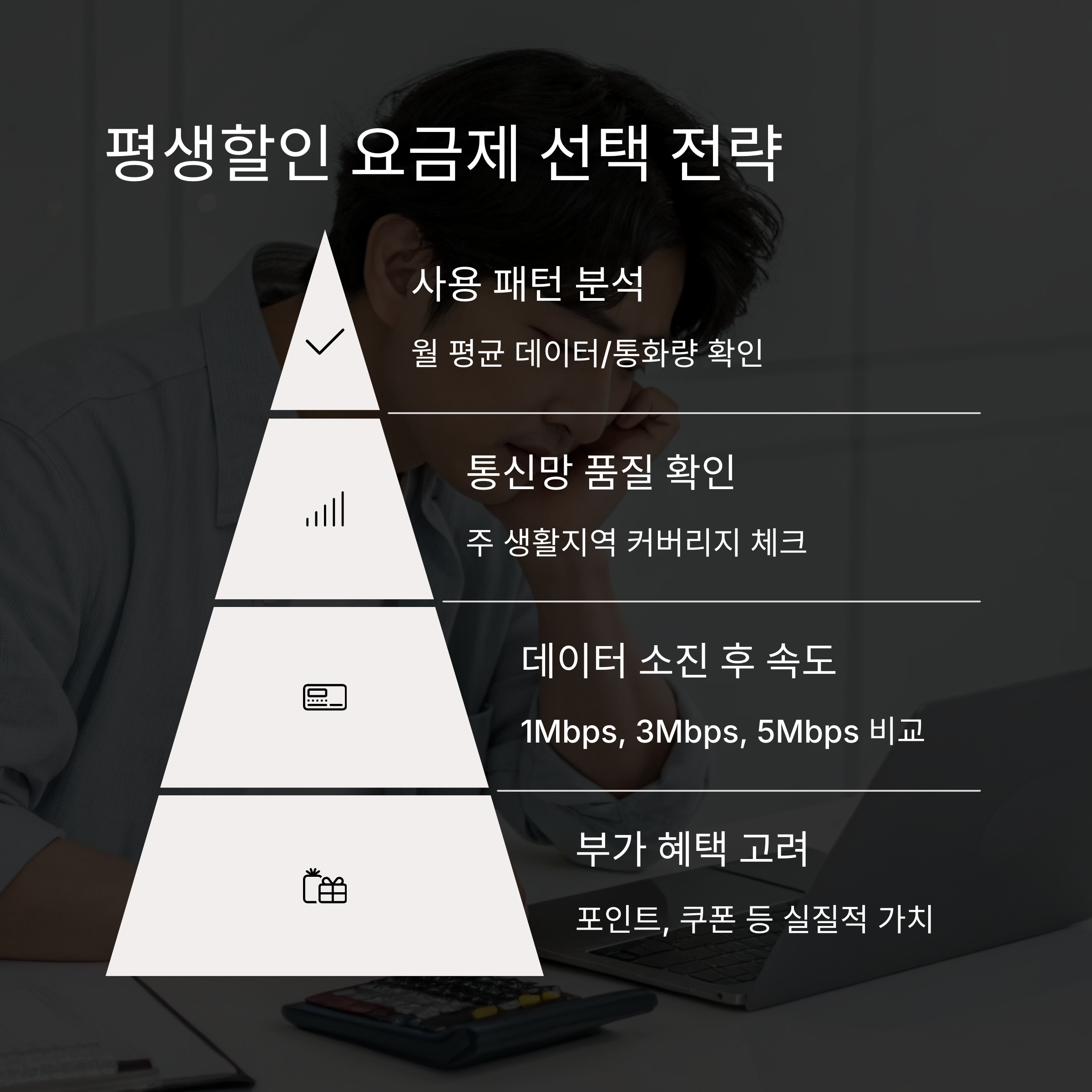 평생할인 요금제를 선택할 때는 다음과 같은 사항을 고려해야 합니다: