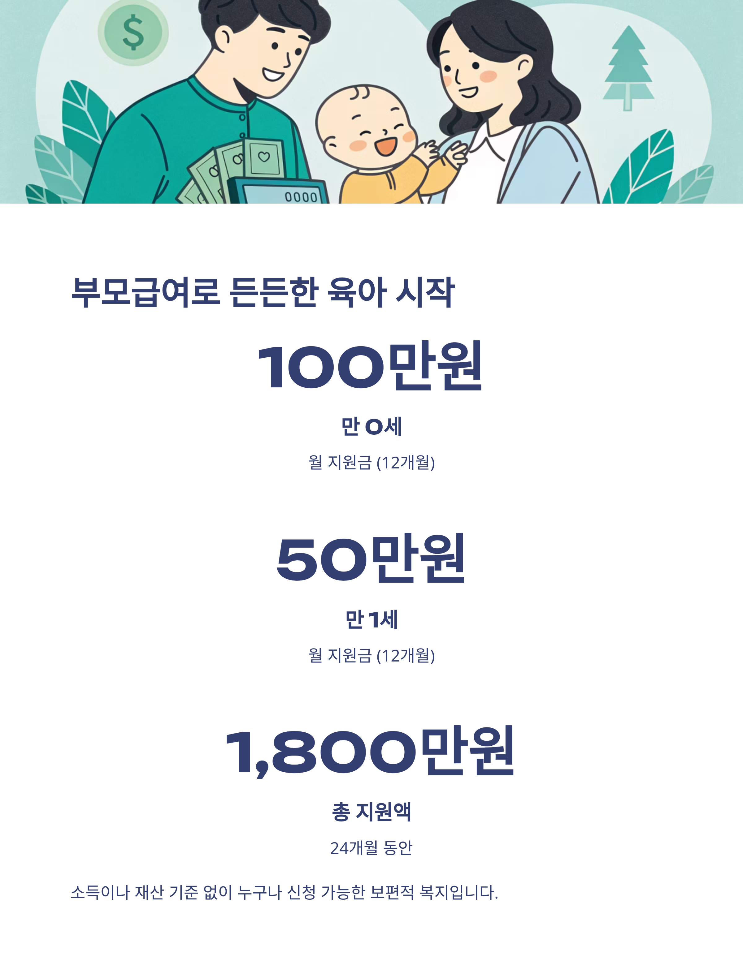 💝 부모급여: 1,800만원 (0~1세, 24개월)