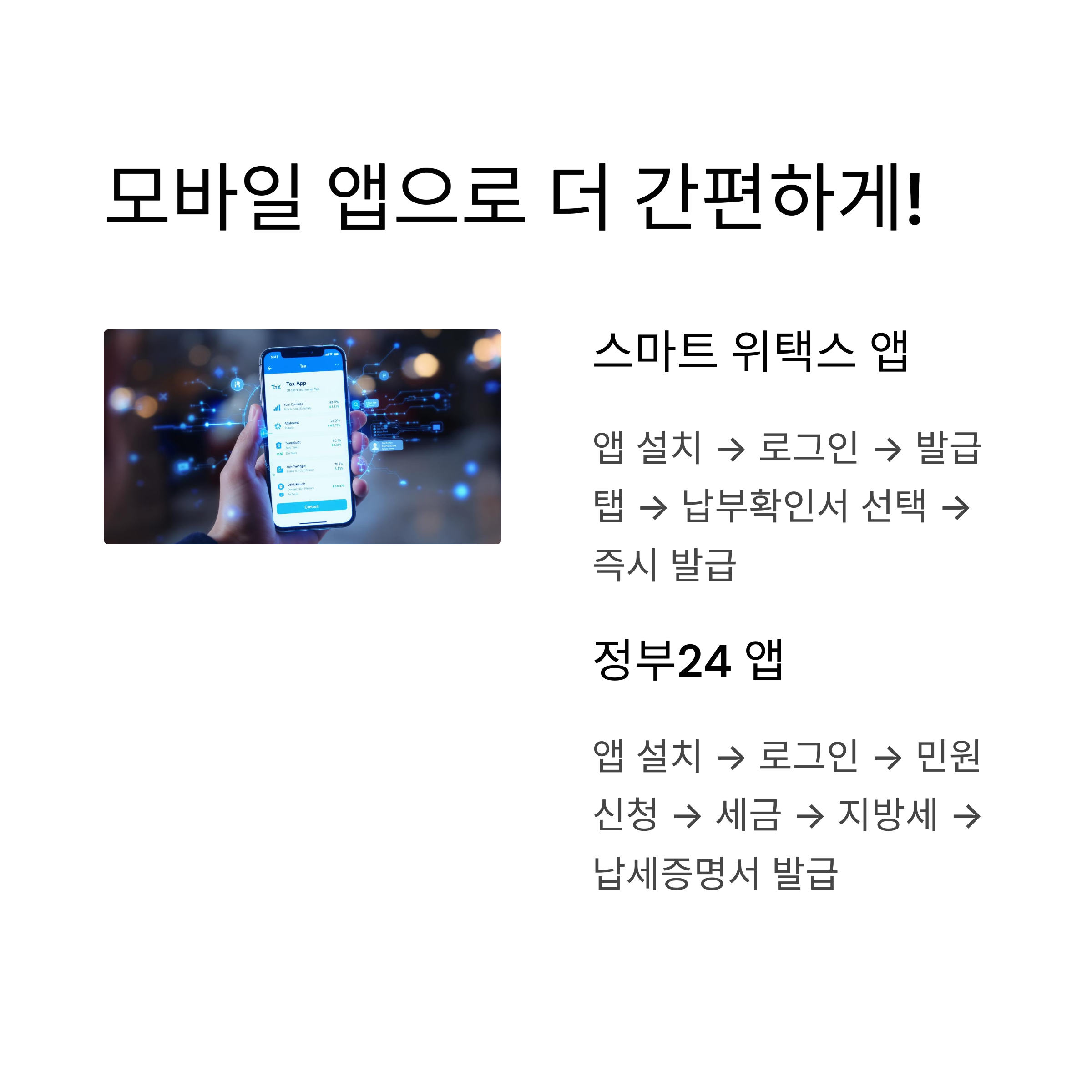 ✅ 최적 발급 방법: 온라인 (위택스/정부24) > 모바일 앱 > 방문 발급