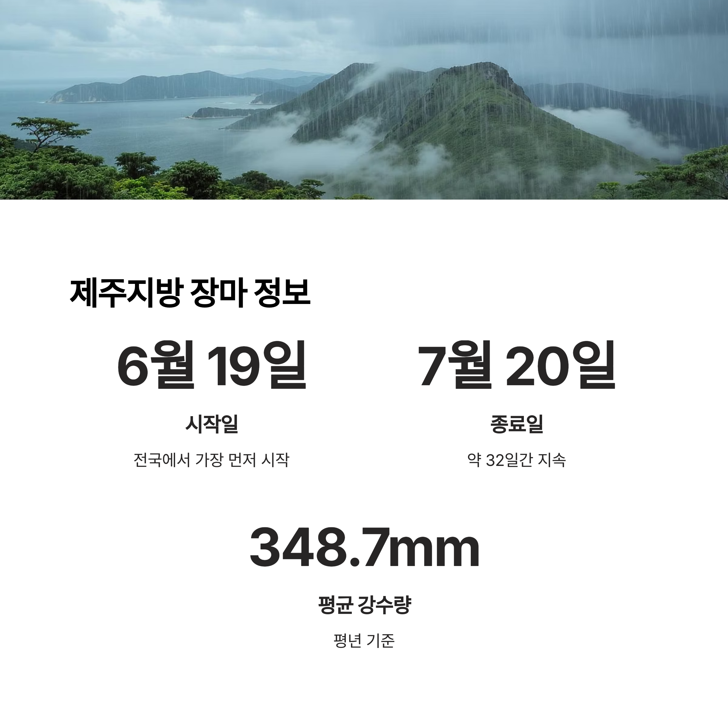 | 제주지방 | 06.19 | 07.20 | 32.4 | 348.7 |