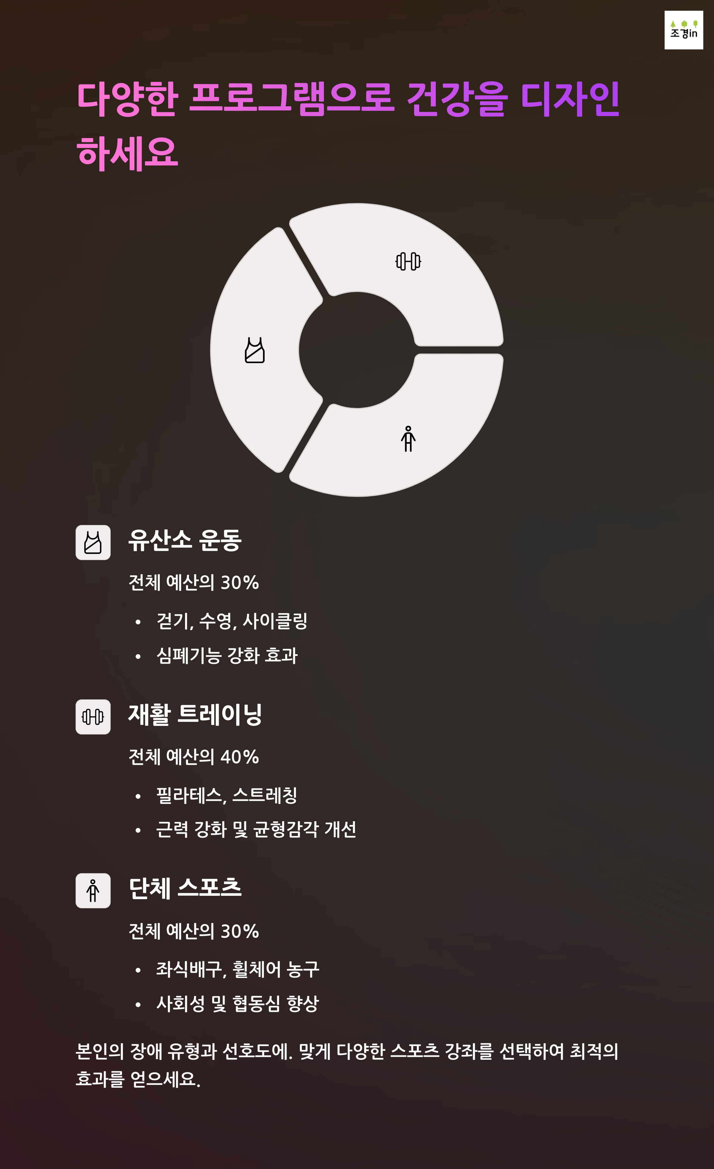 2025년 장애인 스포츠강좌 이용권의 월 11만원 지원금을 최적으로 활용하기 위해서는 개인 맞춤형 프로그램 선택 ,과학적 예산 배분 ,디지털 시스템 적응이 필수적입니다. 지원금 사용 패턴 분석에 따르면, 3개월 이상 꾸준히 참여한 이용자의 89%가 신체적·정신적 개선 효과를 경험한 것으로 나타났습니다.