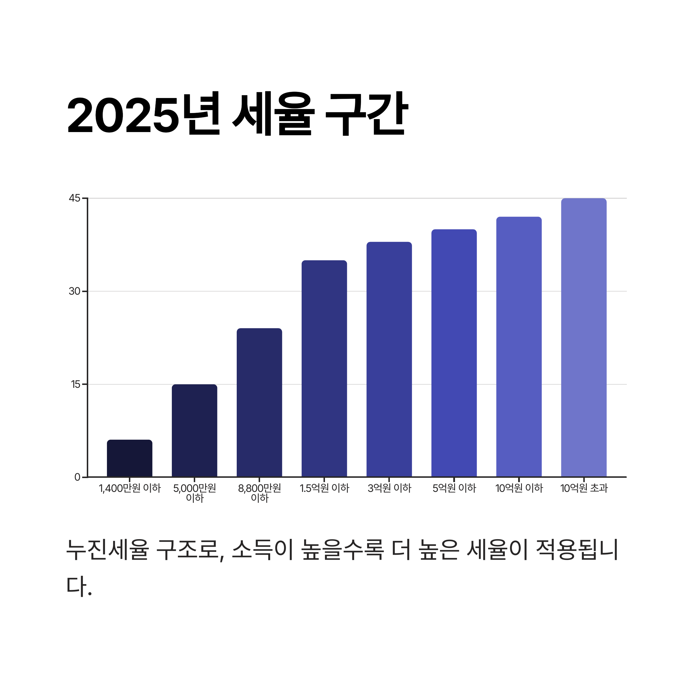 - 2025년 세율 구간: 6%에서 45%까지 8단계 누진세율 적용