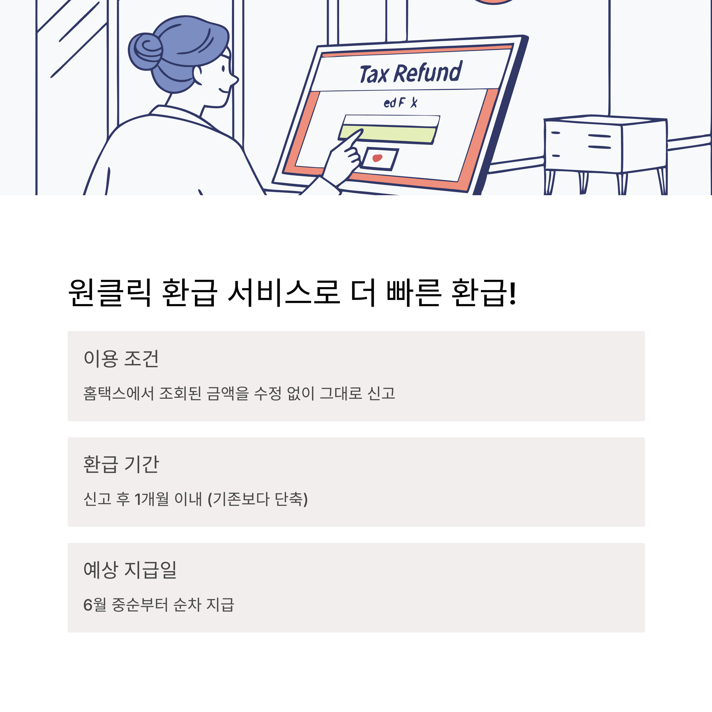 - 대상자: 단순 환급 신고자 (복잡한 소득 구조 제외)