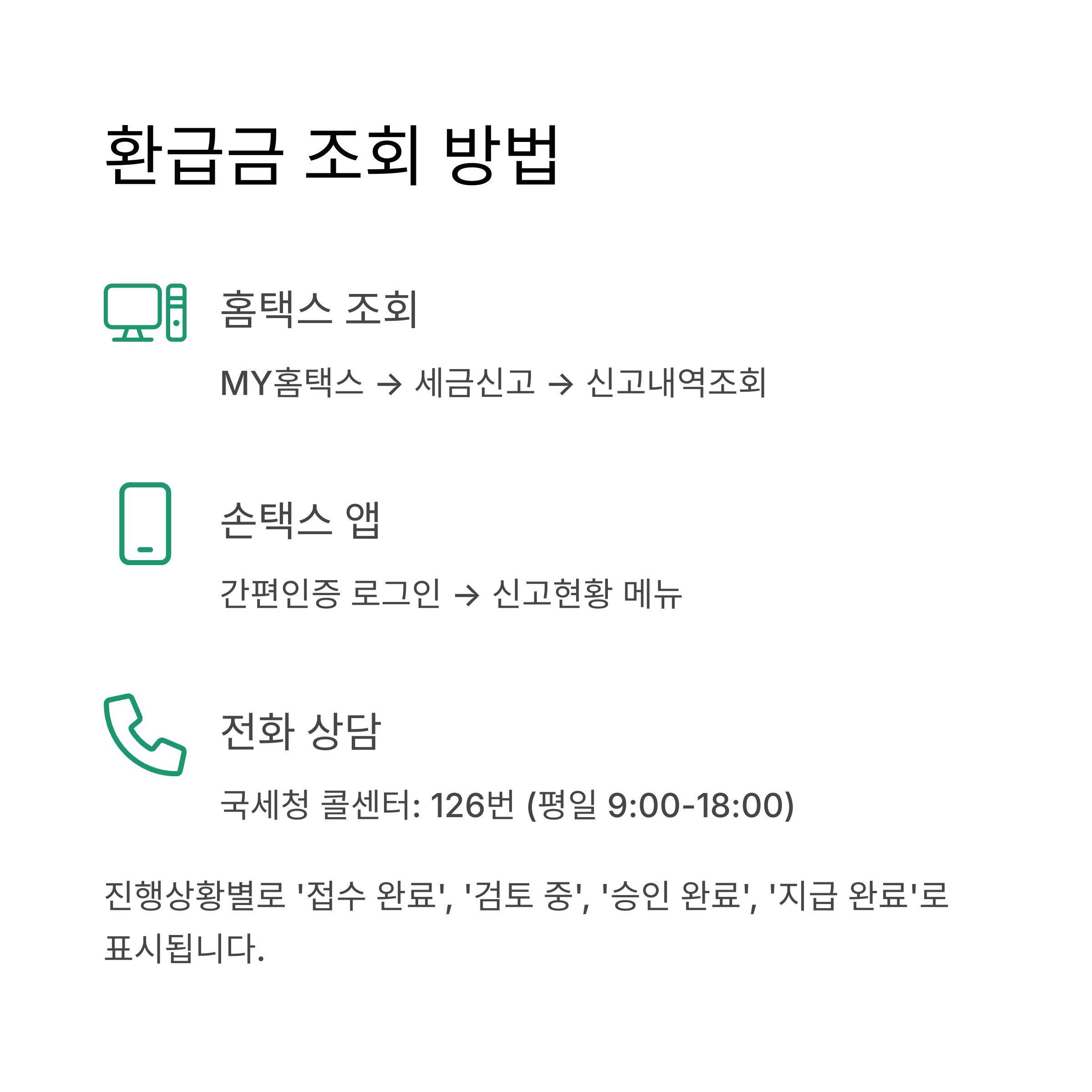 - 알림 설정: 환급 관련 SMS/카카오톡 알림 신청