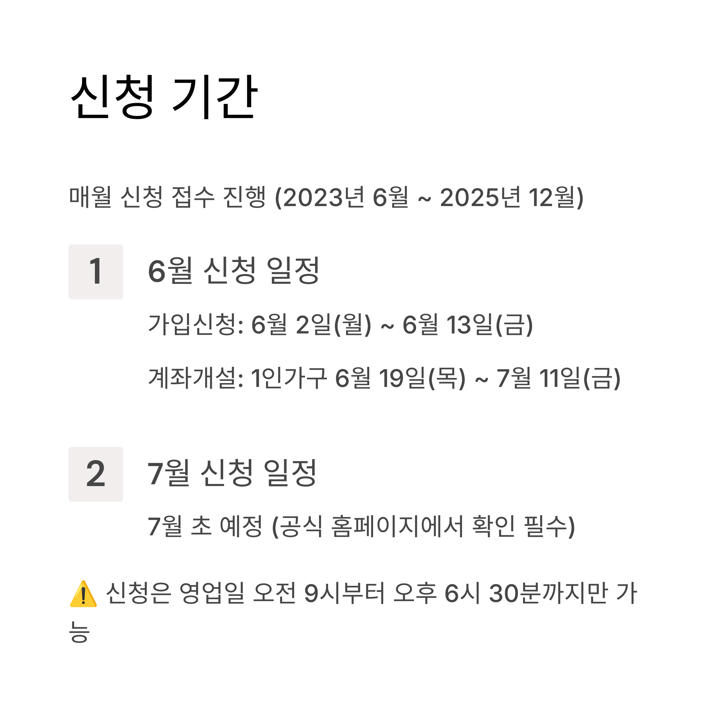 • 가입신청: 2025년 6월 2일(월) ~ 6월 13일(금)