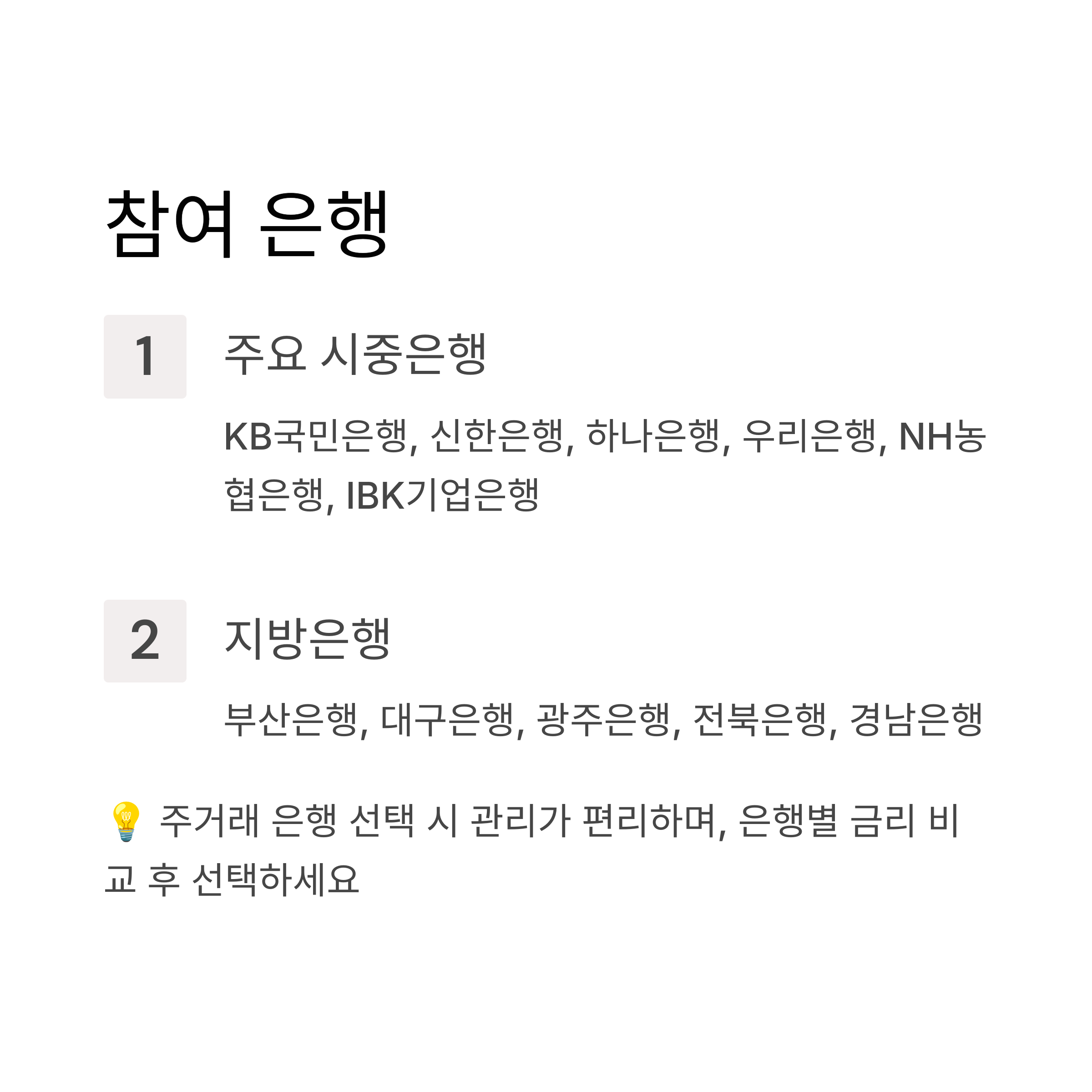 기본 금리: 각 취급 은행에서 자율적으로 결정 (연 4.5% ~ 6.0% 수준)