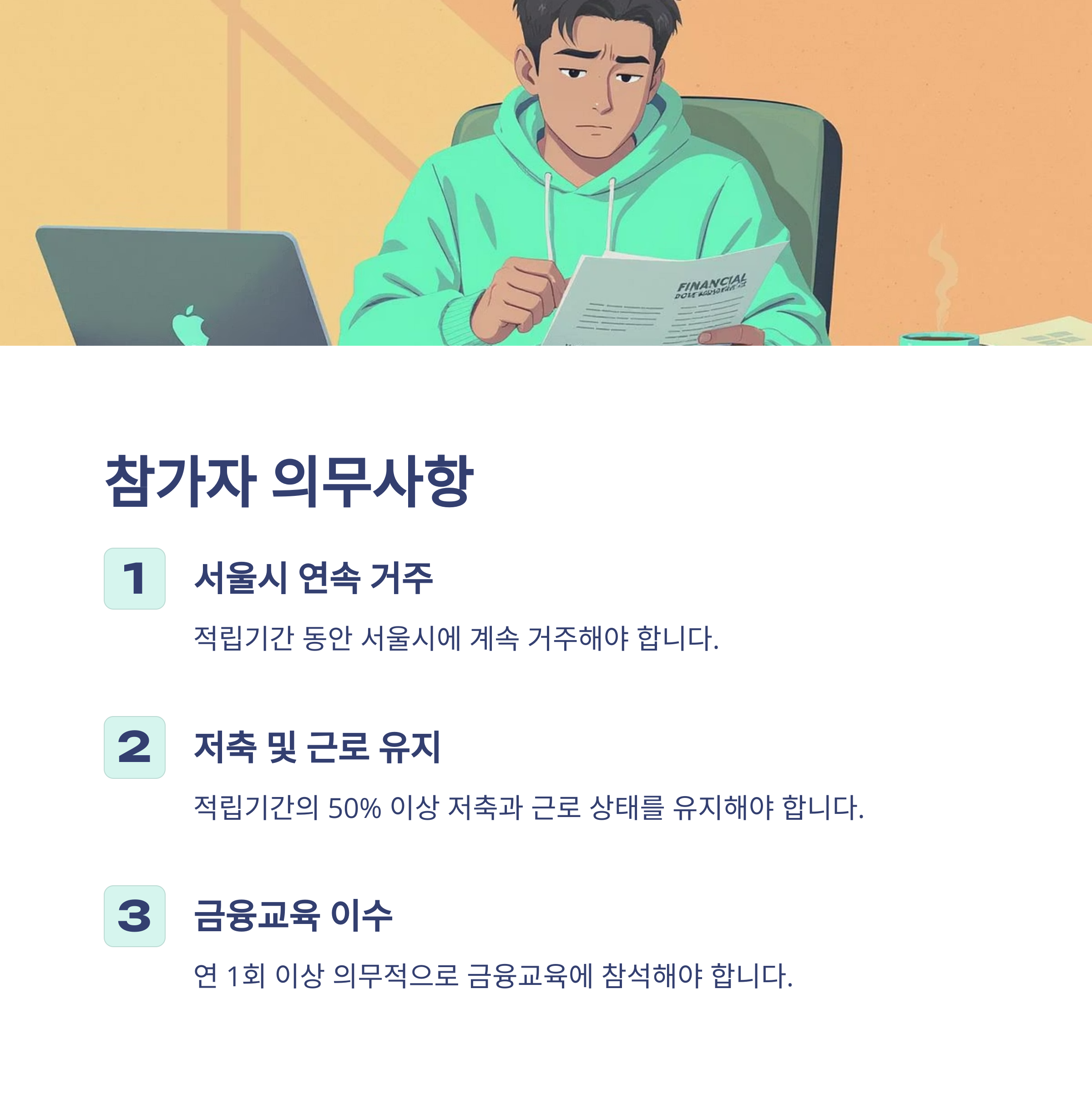 - 연속 거주: 적립기간 동안 서울시 연속 거주 필수