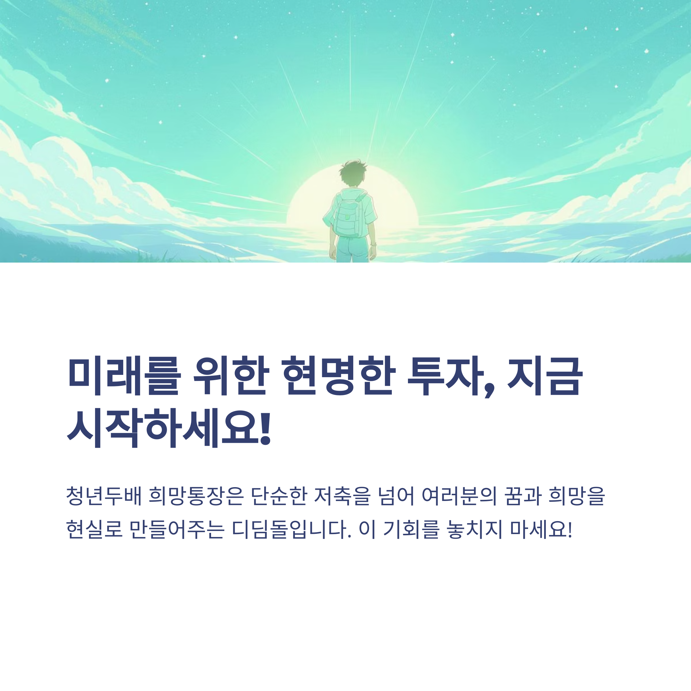 여러분의 성공적인 신청과 선발을 진심으로 응원합니다. 미래를 위한 현명한 투자, 청년두배 희망통장과 함께 시작하세요!