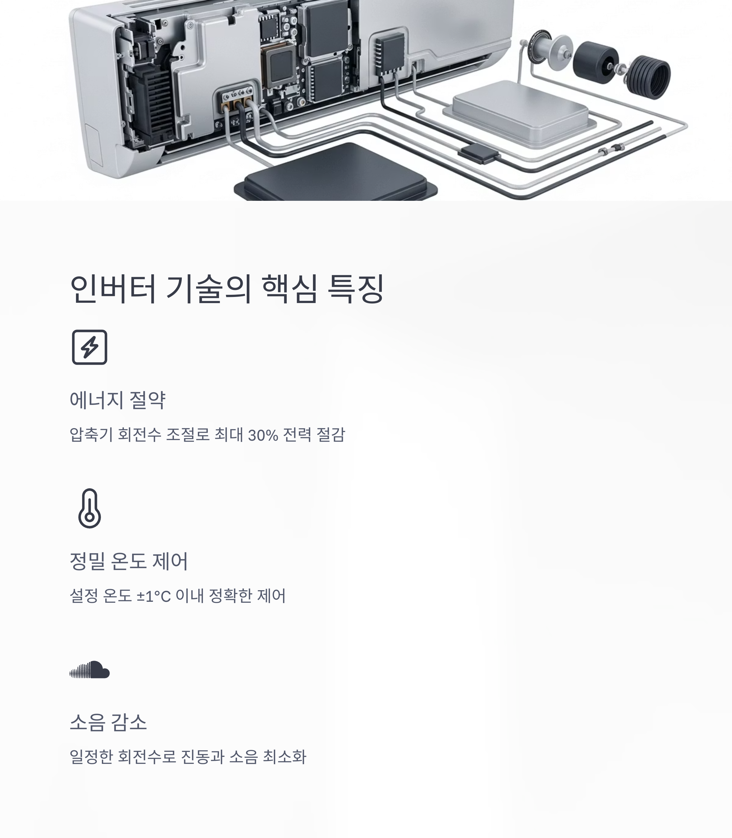 • 에너지 절약: 압축기 회전수 조절로 전력 소비 최적화