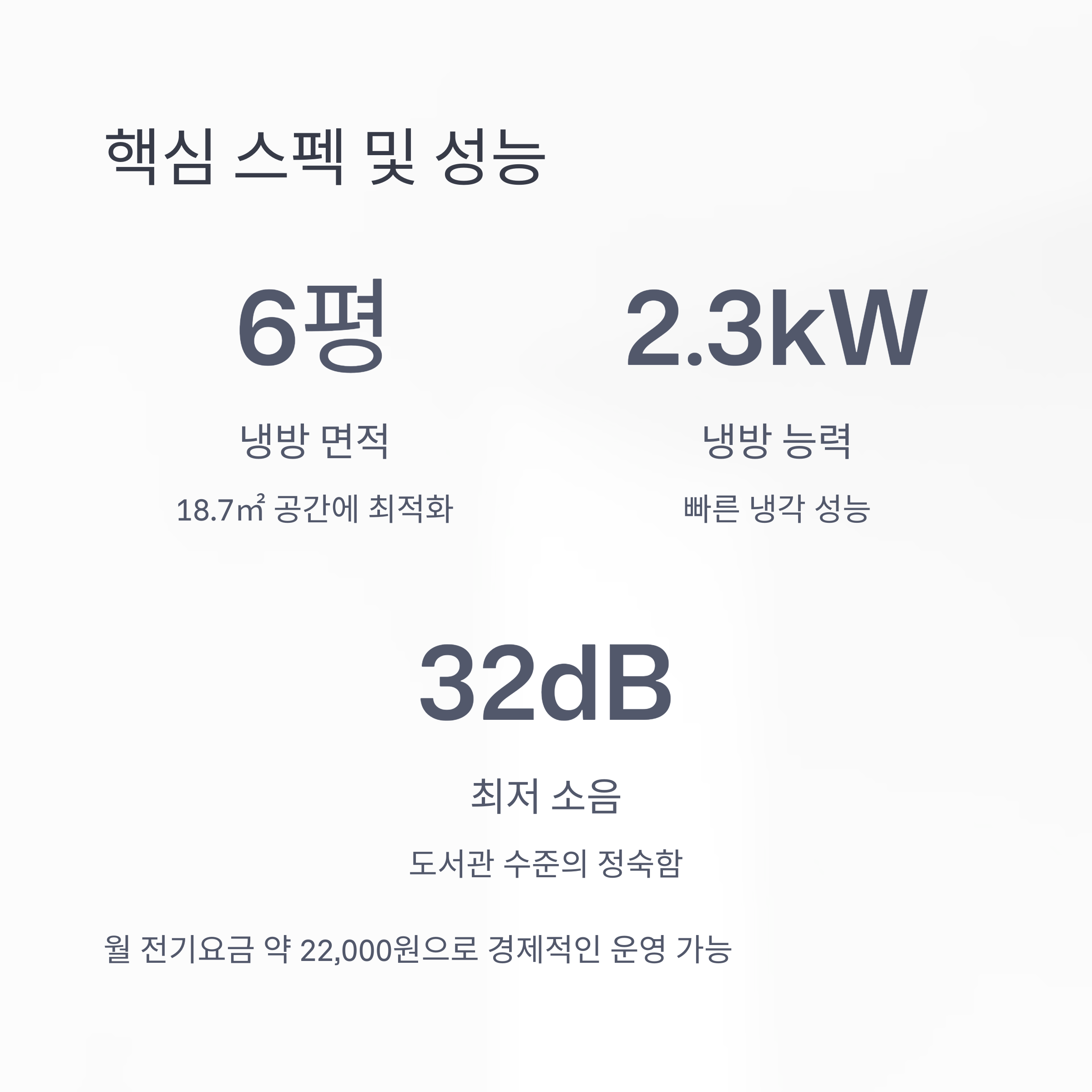 • 냉방 범위: 6평 이하 소형 공간에만 적합