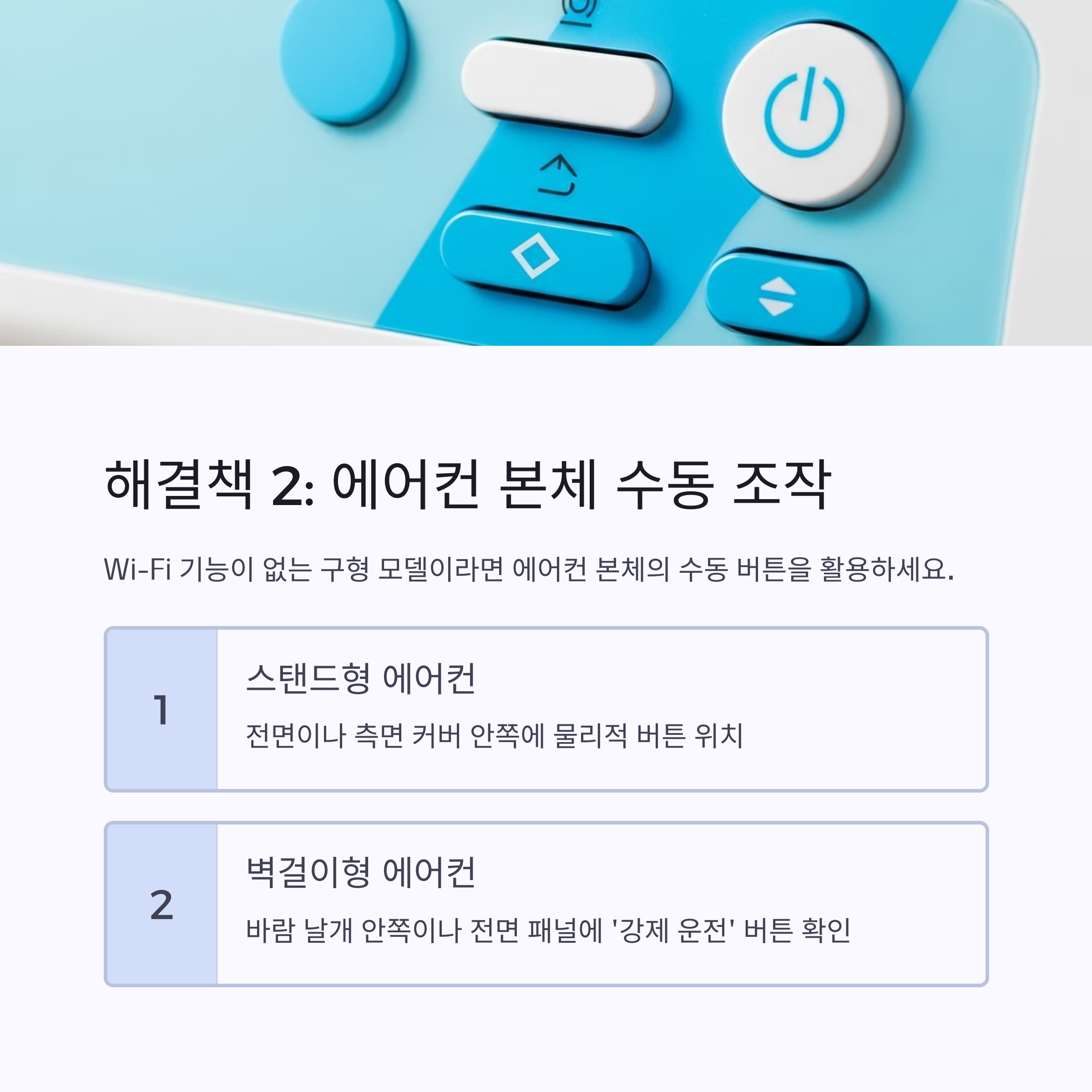 🚨 해결책 2: 에어컨 본체 '수동 조작 버튼' 사용법