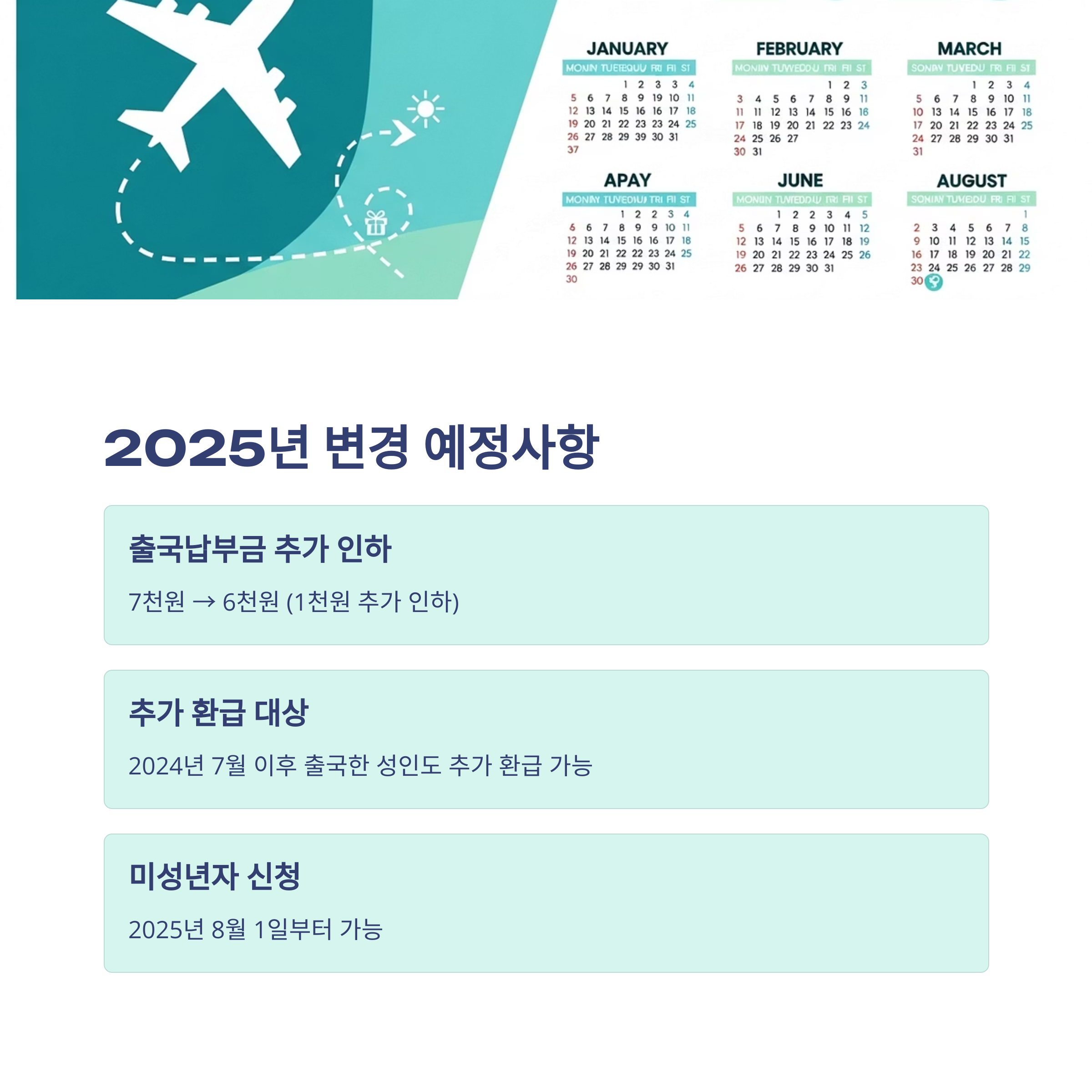 - 2025년 1월: 출국납부금 6천원 시행 예정