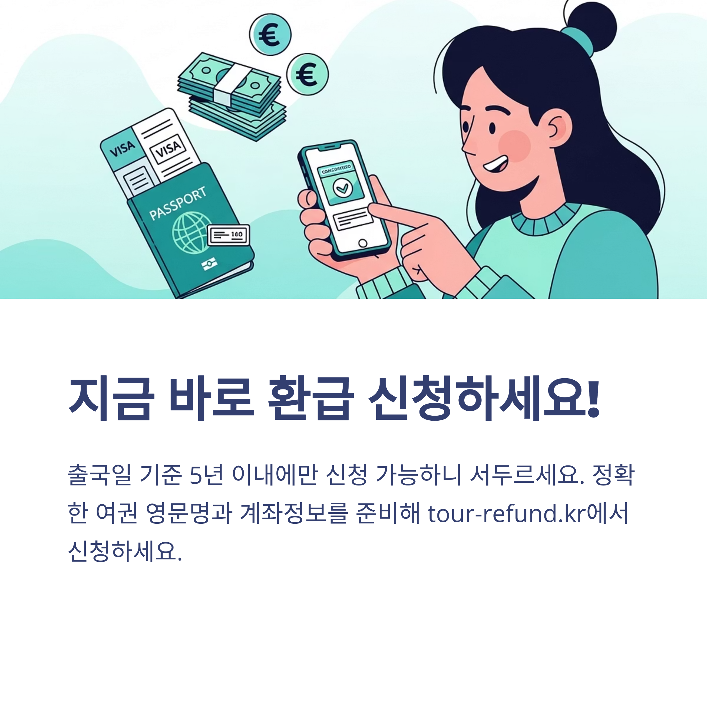 환급 신청 후 처리 결과는 SMS로 안내되므로, 신청 시 입력한 휴대폰 번호를 항상 확인할 수 있도록 해주세요. 환급이 거부된 경우 사유가 함께 안내됩니다.