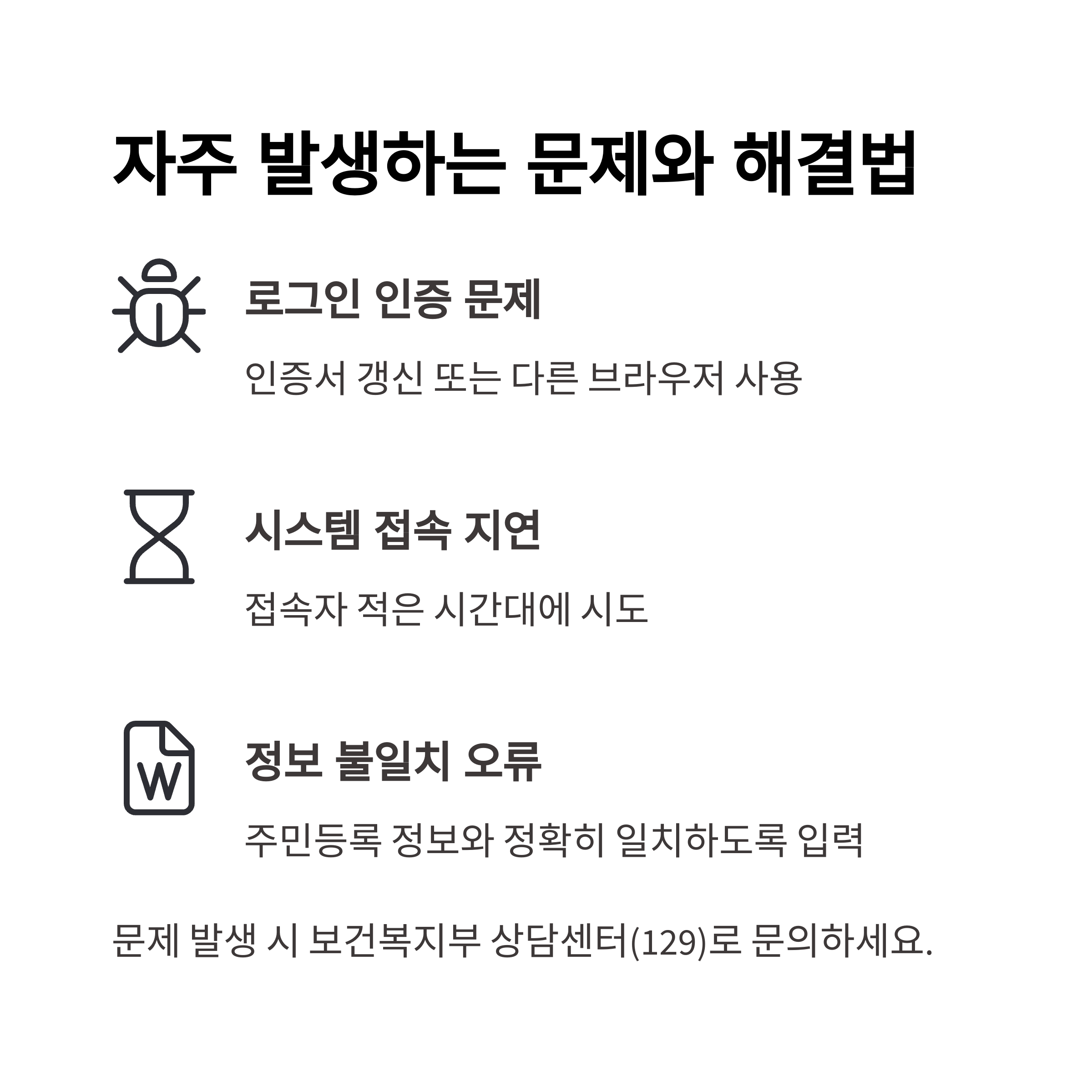 복지로에서 첫만남이용권 신청 시 사이트 접속이 지연되는 경우가 있습니다. 특히 평일 오전 9시~11시, 오후 2시~4시는 접속자가 많은 시간대이므로 가급적 저녁 시간이나 주말에 신청하는 것이 좋습니다. 또한 신청 전에 인터넷 익스플로러가 아닌 크롬, 엣지 등의 최신 브라우저를 사용하면 오류 발생 확률이 낮아집니다.