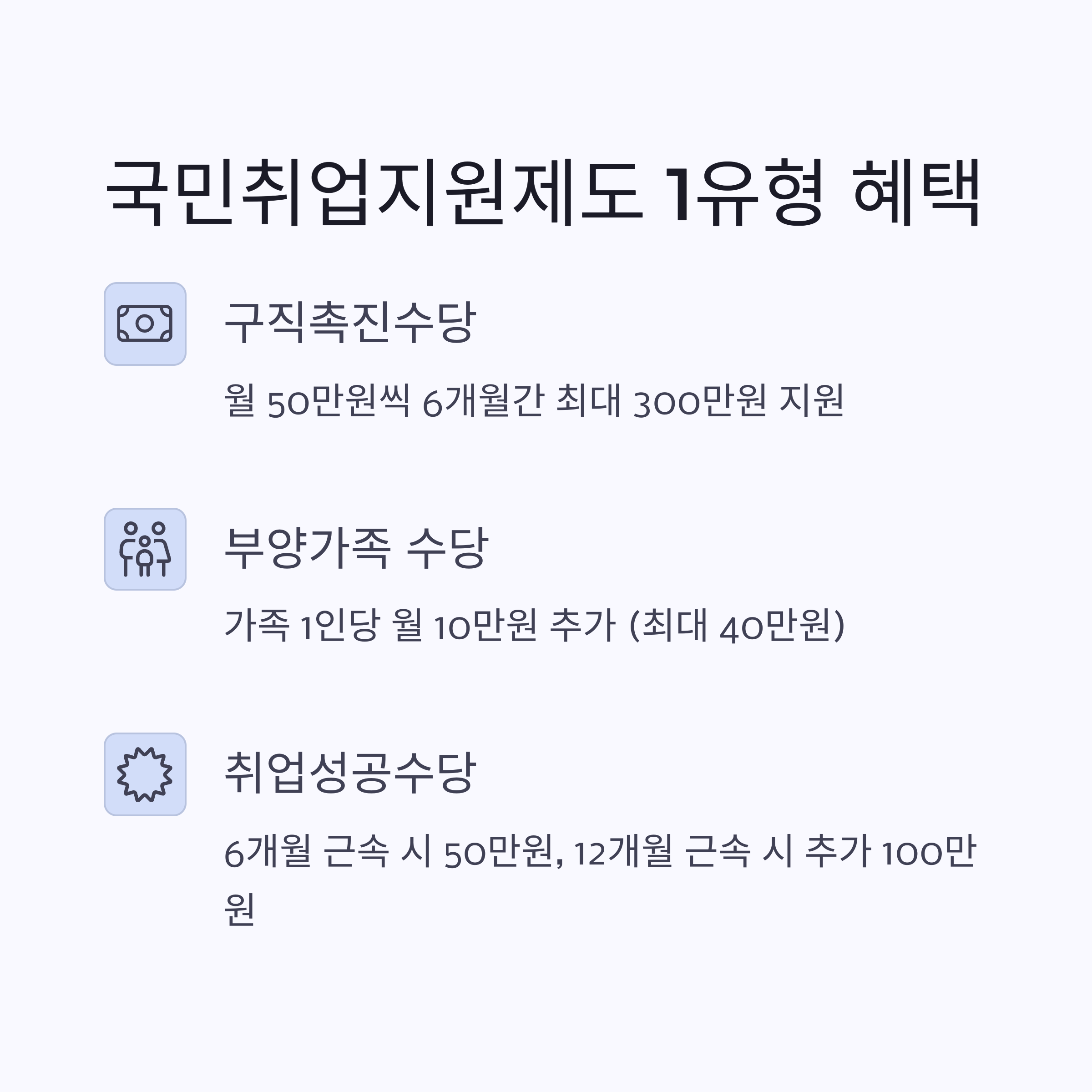 - 취업성공수당: 취업 성공 시 추가 지원