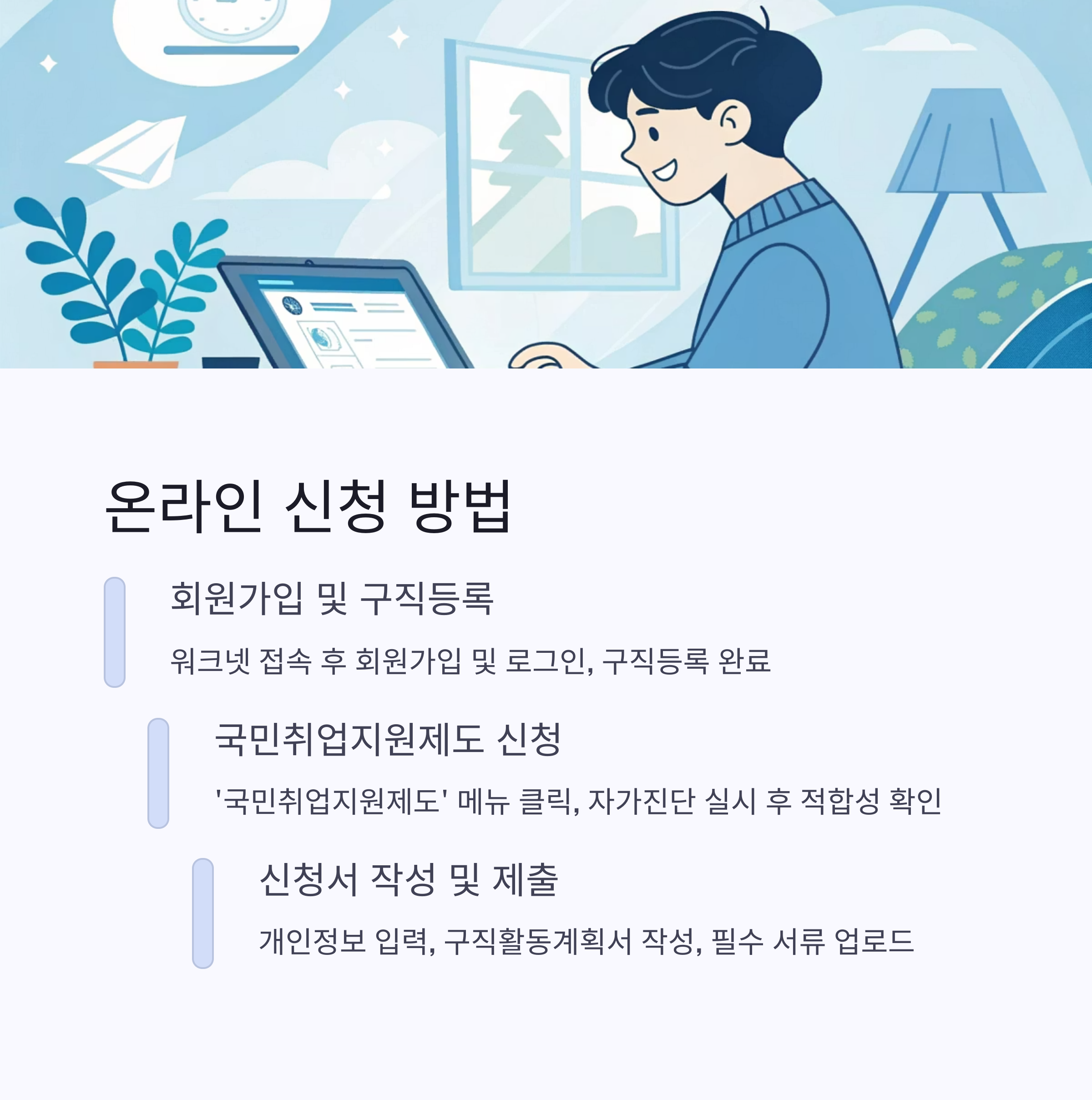 취업 준비 지원금 신청은 온라인으로 간편하게 할 수 있습니다. 워크넷(고용24)이나 정부24를 통해 신청할 수 있으며, 모바일로도 신청이 가능합니다. 아래 단계별 가이드를 따라하시면 쉽게 신청할 수 있습니다.