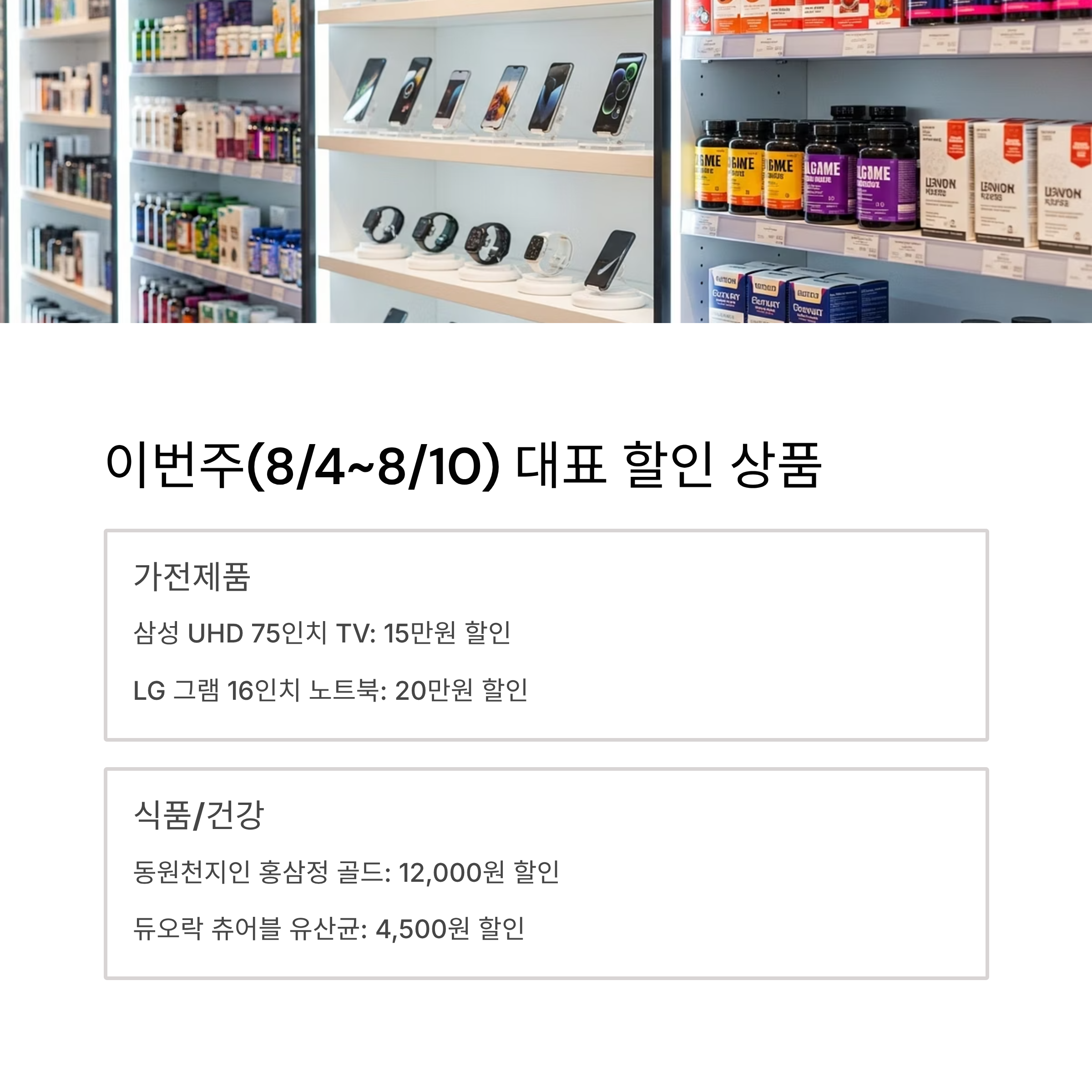✨ 이번주(8/4~8/10) 대표 할인 상품 한눈에 보기