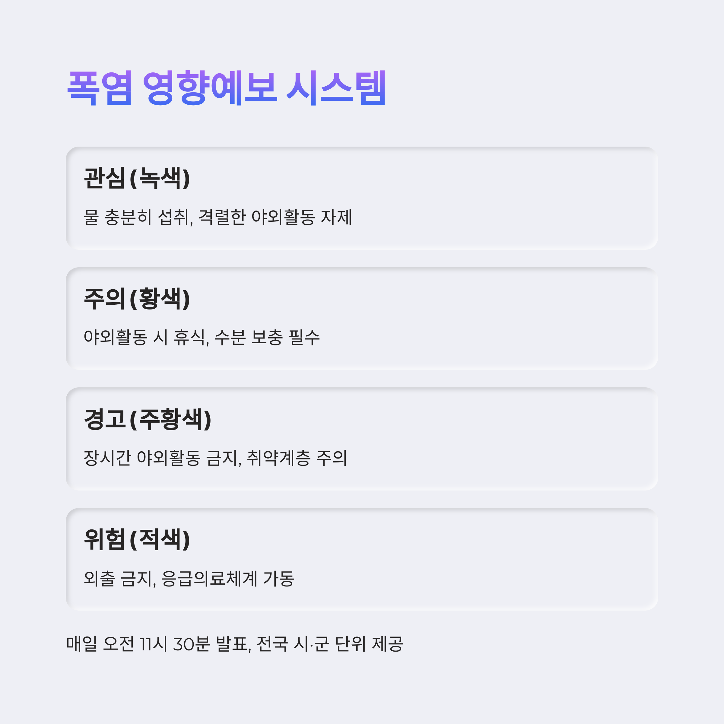 2025년 현재 기상청은 단순한 폭염특보를 넘어서 '폭염 영향예보 시스템'을 운영하고 있습니다. 이 시스템은 폭염이 사회 각 분야에 미치는 영향을 4단계로 구분하여 보다 구체적이고 실용적인 정보를 제공합니다.