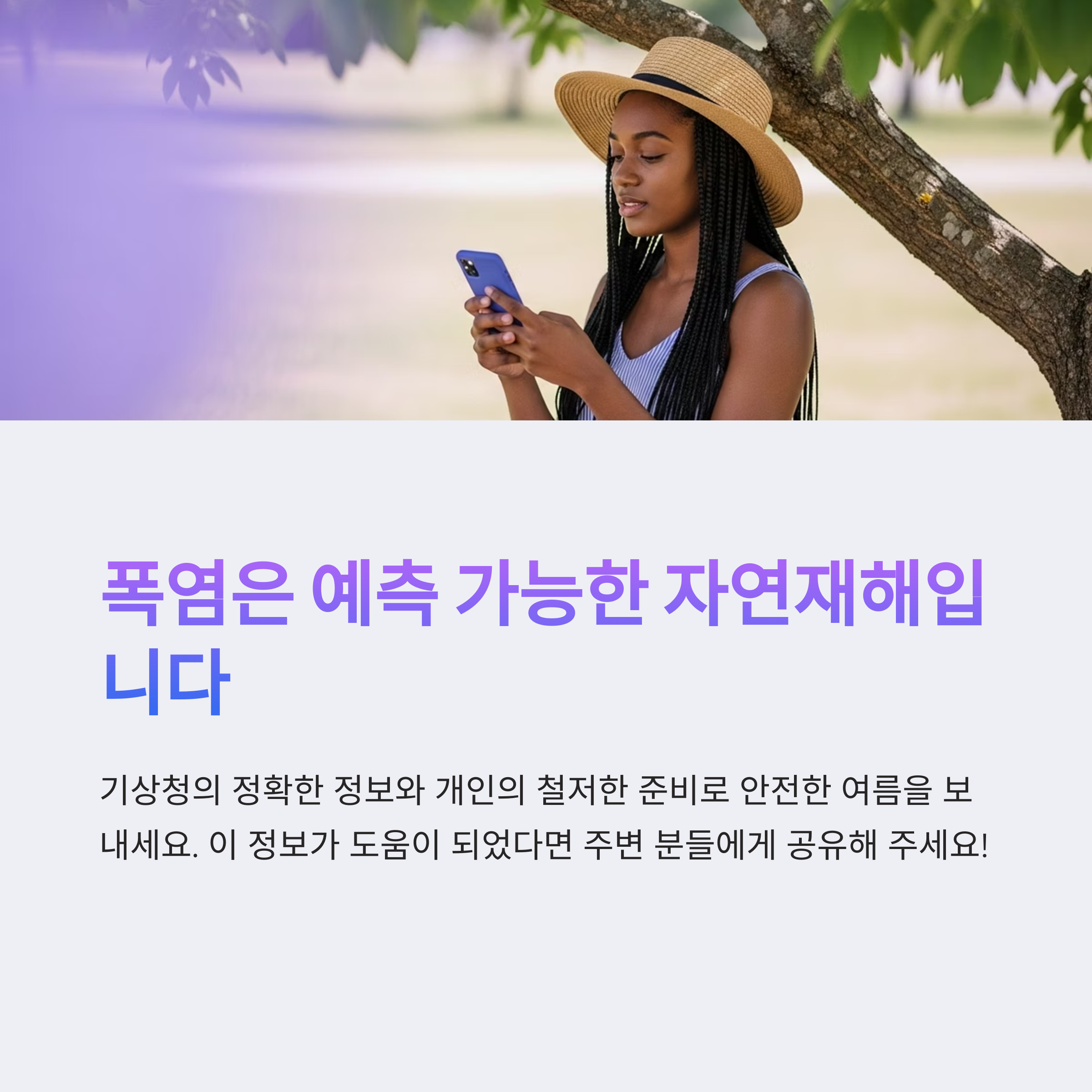 폭염은 예측 가능한 자연재해입니다. 미리 준비하고 적절히 대응한다면 충분히 극복할 수 있습니다. 기상청의 정확한 정보와 개인의 철저한 준비가 만났을 때, 안전하고 건강한 여름을 보낼 수 있을 것입니다.